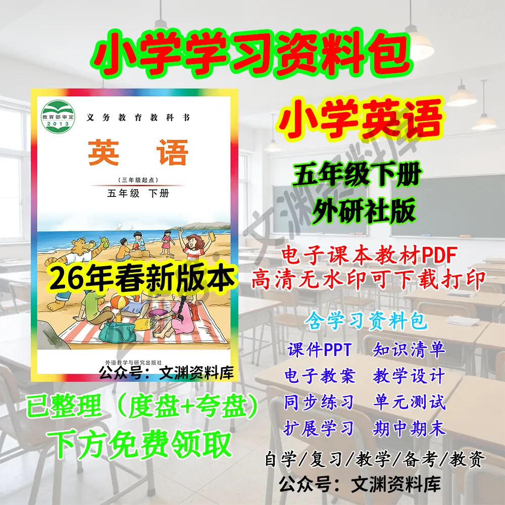 26年春新小学英语五年级下册外研社版电子课本教材pdf高清无水印电子版可下载打印预习复习备考教学学习专用