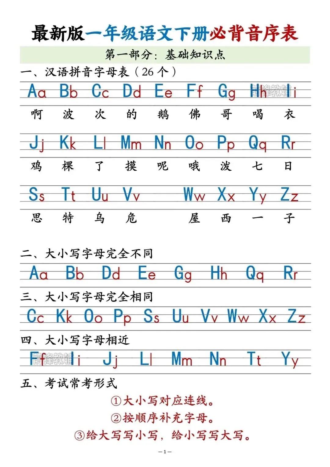 今日分享26春《一年级下册语文必背音序表》电子版可打印!一年级语文启蒙,赢在基础,胜在坚持,音序表是孩子识字、查字、拼写的核心工具,寒假提前记牢,既能帮孩子规范拼音基础、提升识字效率,又能培养自主学习能力,让孩子开学后快速适应下册语文学习,轻松认读生字、应对课堂要求!