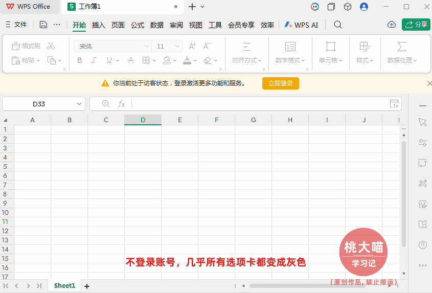 有小伙伴私信反馈:以前WPS不登录也能正常使用基础功能,但现在如果不登录账号,几乎所有选项卡都变成灰色,仅能进行简单的录入、保存和打印等基础操作。想请教一下,如果在没有网络或者临时使用的情况下,有没有办法恢复到之前无需登录就能使用基础功能的状态?
