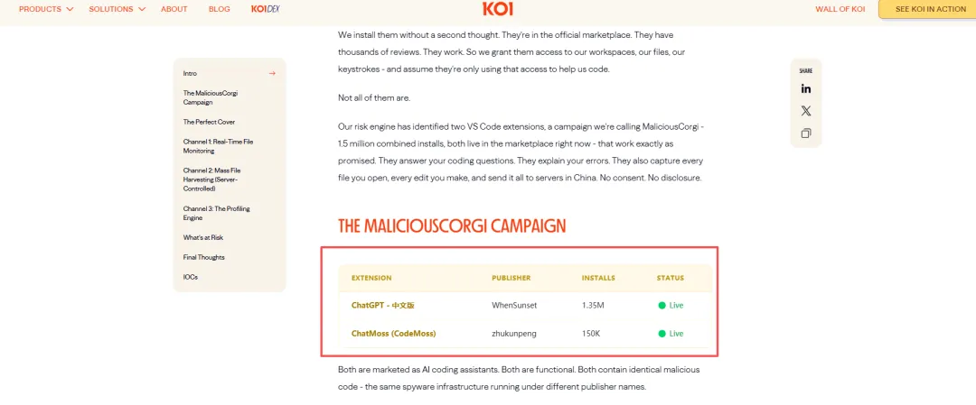[1]https://www.koi.ai/blog/maliciouscorgi-the-cute-looking-ai-extensions-leaking-code-from-1-5-million-developers
