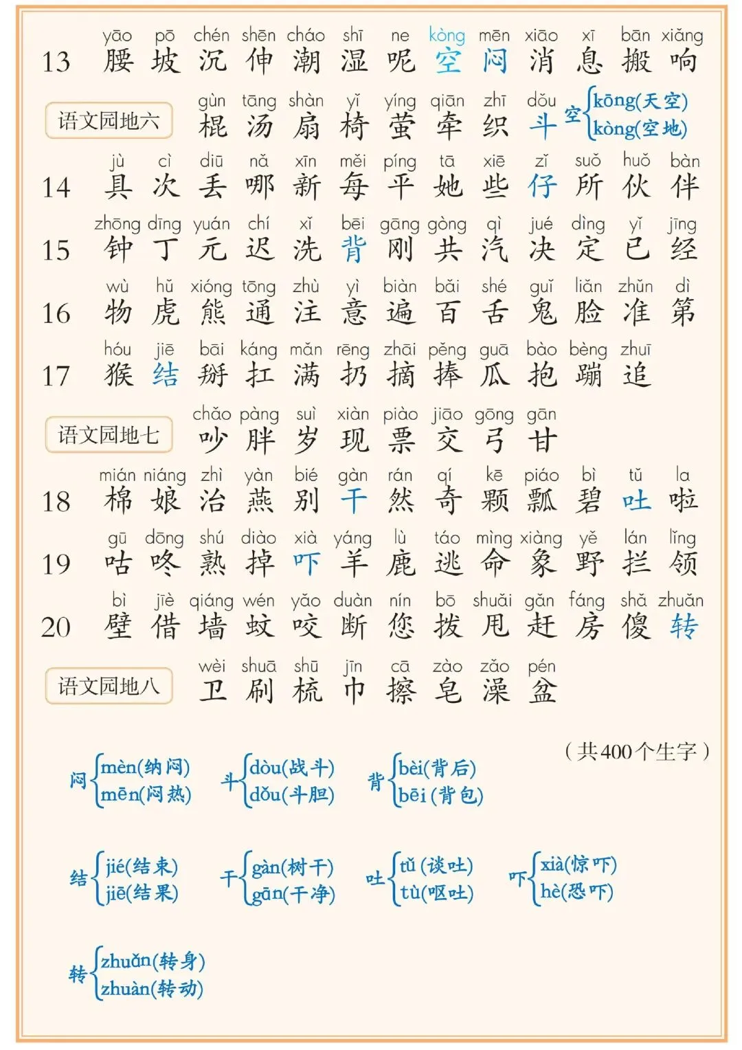 识字表:400个生字,是打开自主阅读的钥匙。每天认几个,结合生活场景巩固,孩子阅读更顺畅。