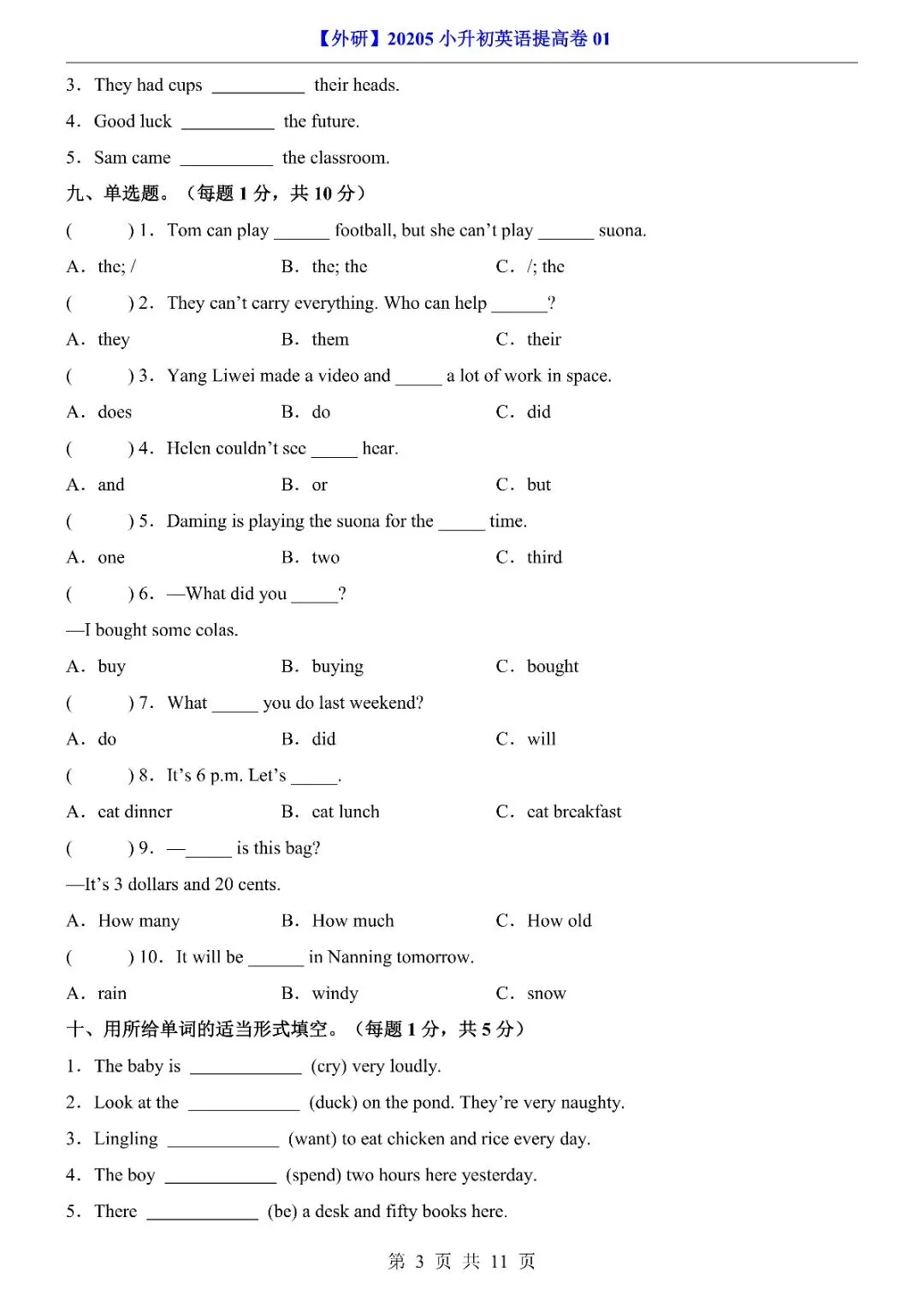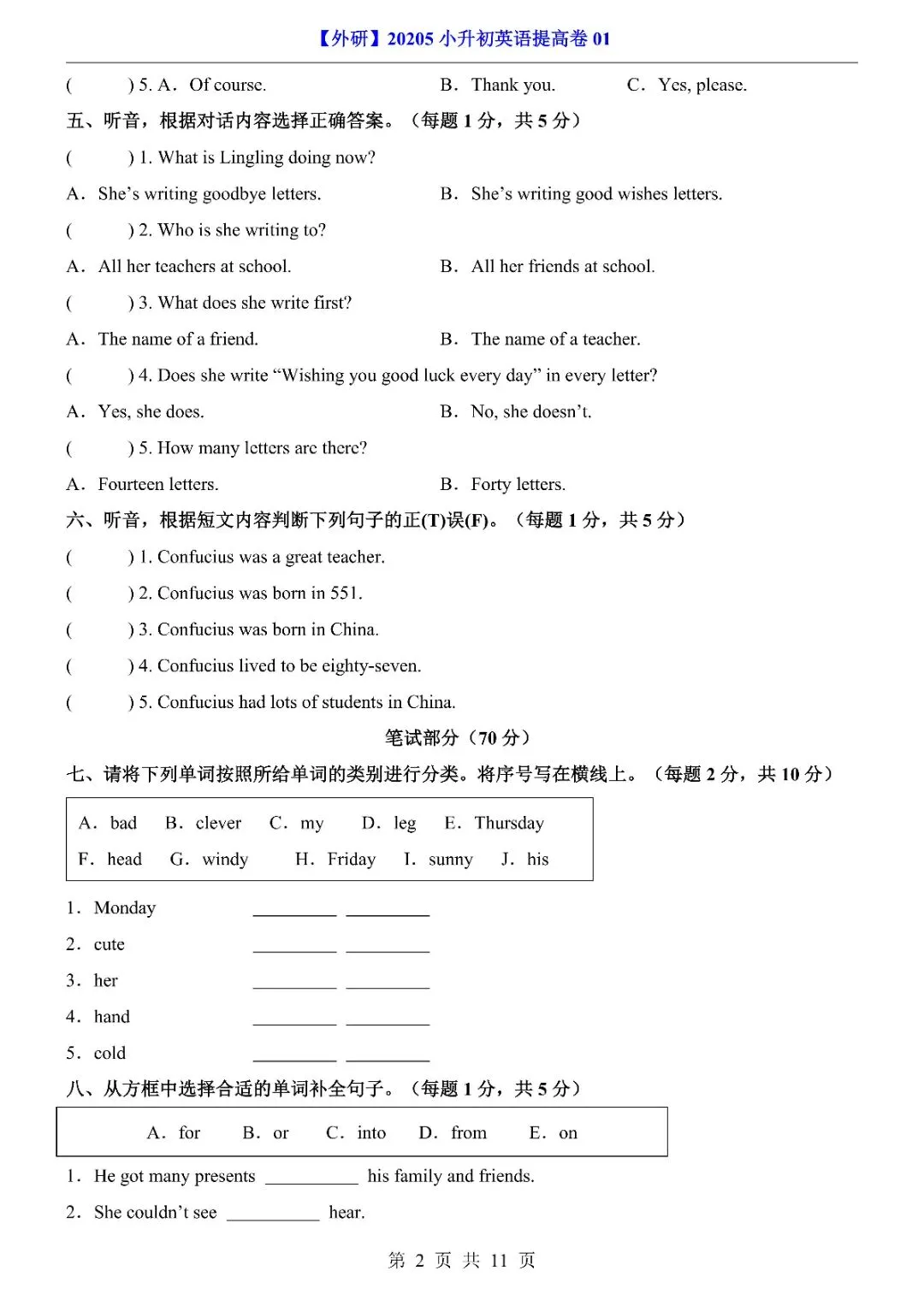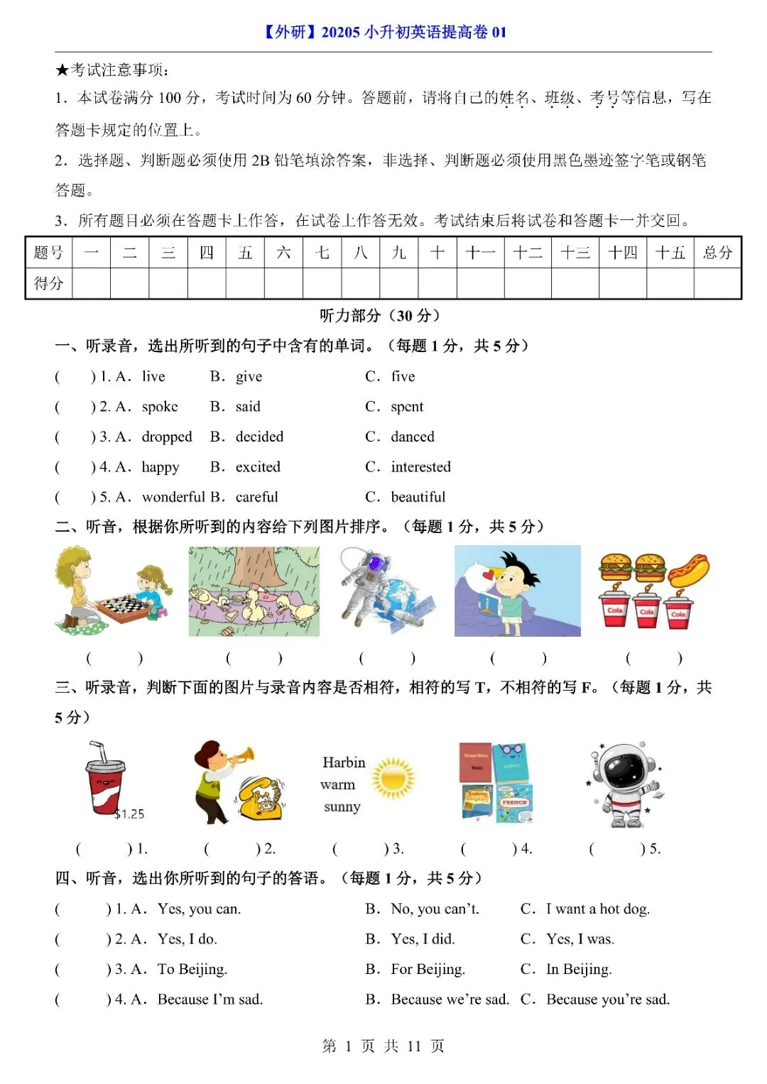 26年春《小升初外研英语提高卷01》完整电子版,有答案,文末有下载链接