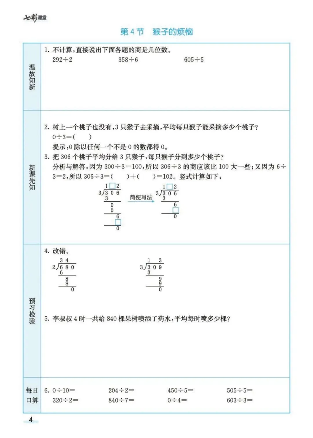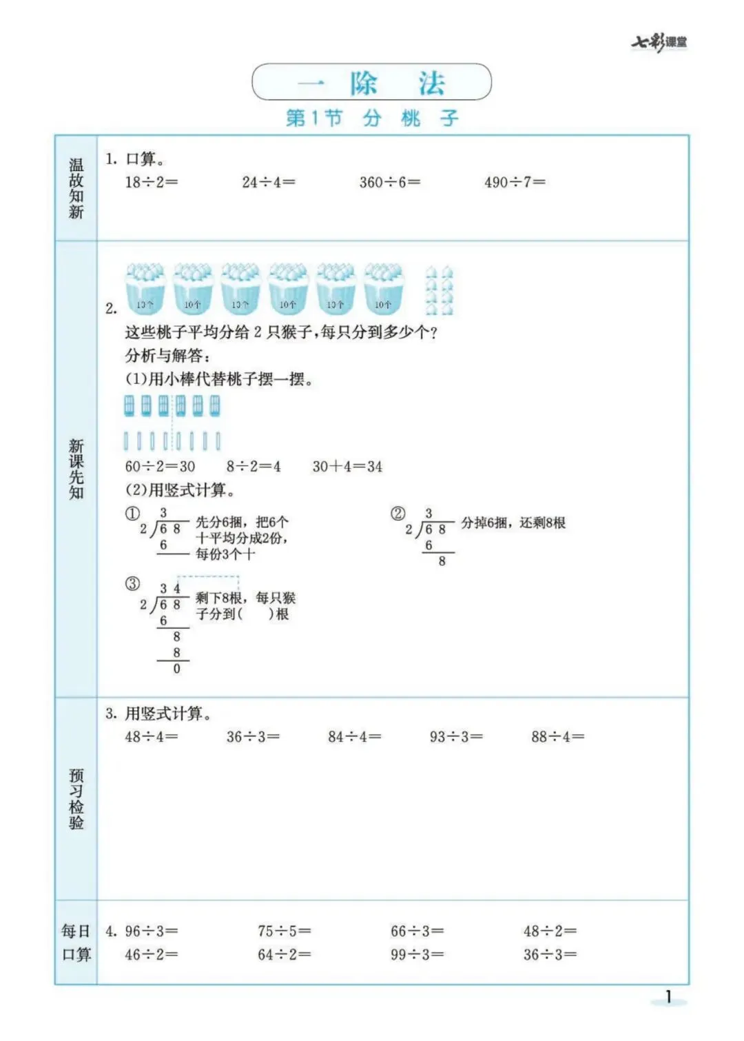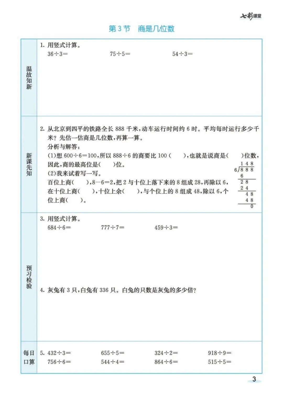 《北师大版数学3年级预习卡》可免费下载打印