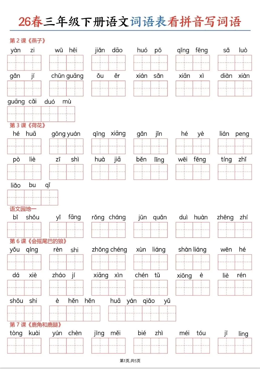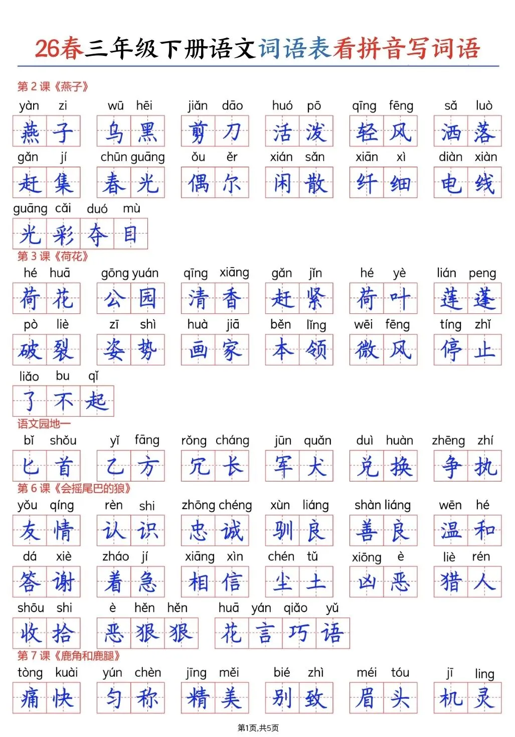 2026年春三年级下册语文词语表,电子版可打印