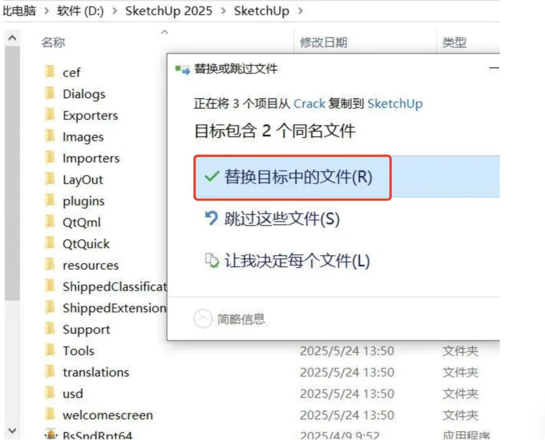 返回之前解压的文件夹,打开文件夹:Crack,复制里面的:LayOut和SketchUp两个文件。