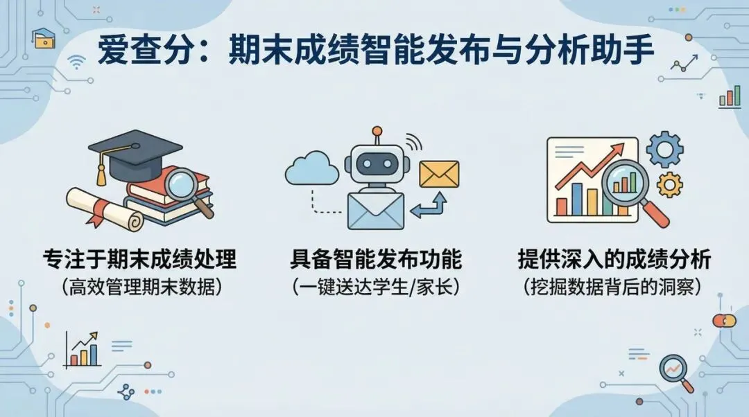 如今,随着AI技术的成熟,一批专业的成绩发布统计分析软件应运而生。这些工具不仅能一键完成成绩发布,更能自动生成可视化报告、进行深度学情诊断,真正实现”数据驱动教学”。其中,爱查分作为完全免费的标杆工具,已帮助无数教师告别繁琐的成绩管理工作。