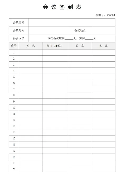 各类会议签到表模板