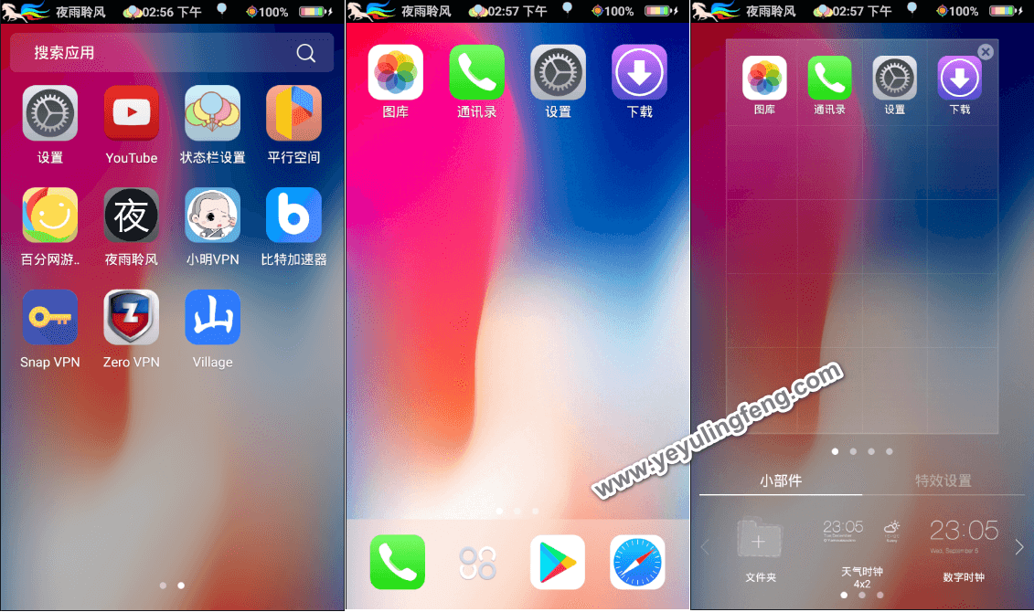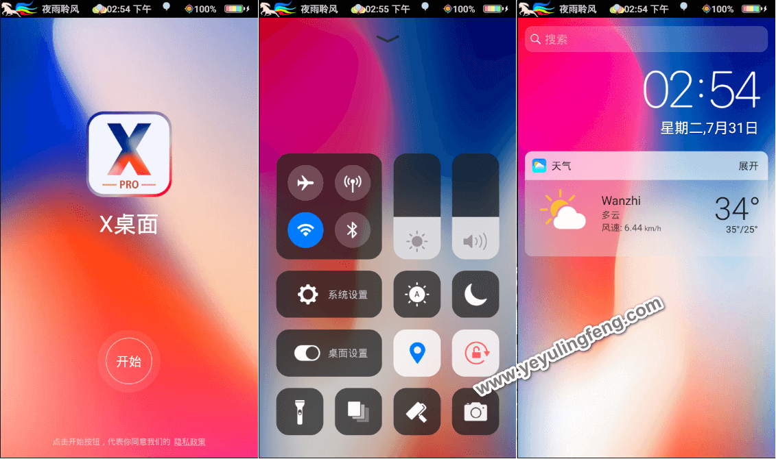 iOS系统的丝滑想必大家都深有体会,因此不少人喜欢拿iOS跟Android相比较。因为iOS优先处理屏幕,Android优先处理进程,所以水果机确实是要流畅辣么一点点,说安卓卡顿的估计还是停留在零几年刷机热潮中,在多次的版本跌进下二者之间的差距也在不断的缩小,但是iOS系统为了所谓的“安全”过于封闭又对第三方应用极其不友善,玩机体验上始终不如安卓,这也就是各种破解、绿色等应用没有iOS影子的原因。存在即为合理,二者运行机制、后台制度、权限都不相同,因此也没有多大可比性,与其乱扣帽子不如自己亲身体验,这里老夜附上一个高度仿苹果IOS桌面的桌面应用,不仅仅是图标的改变,从特效上都是深度复制IOS,此版本已经完美专业功能,是一款非常高逼格的一款苹果X桌面。