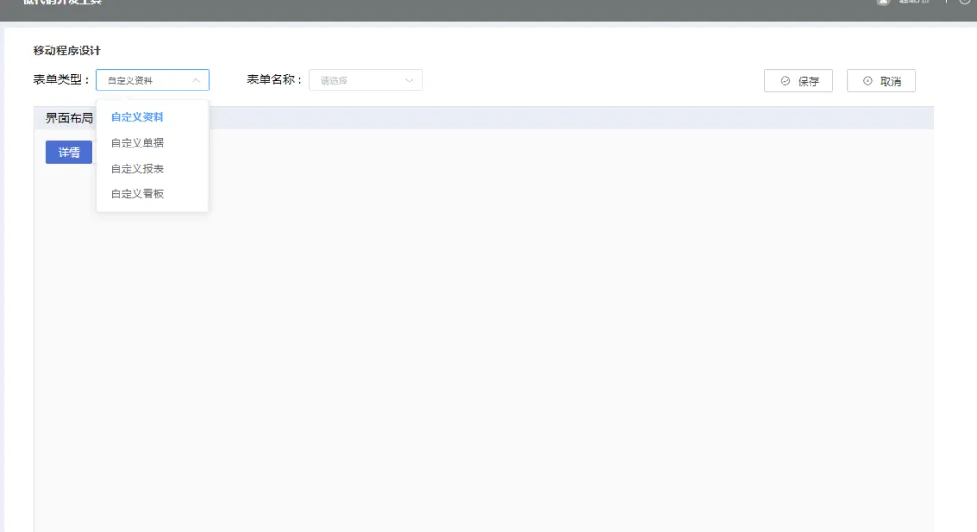 选择表单类型 提供四种,自定义资料 自定义程序 自定义报表 自定义看板