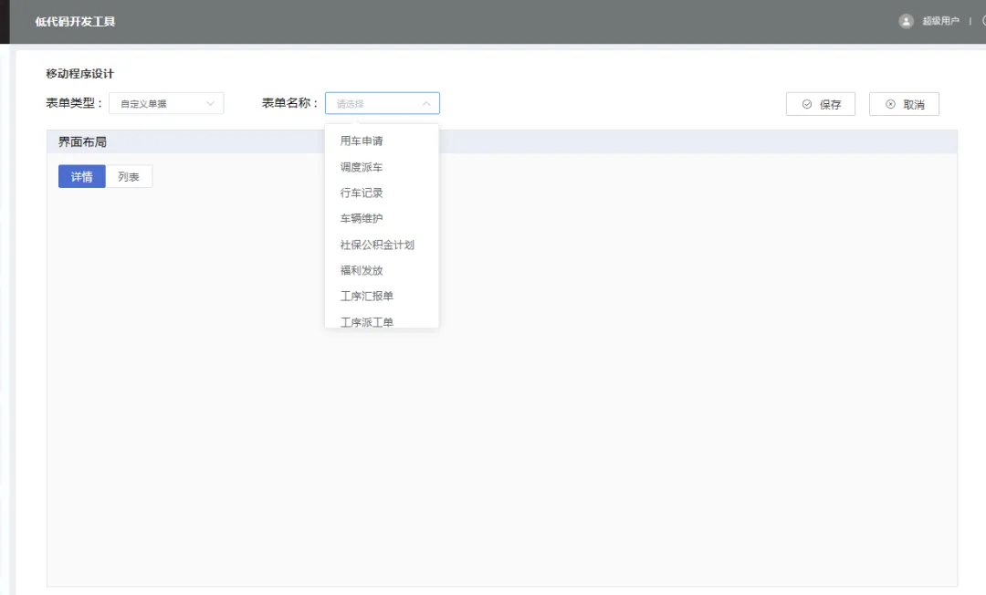选择表单名称 当前显示的是 已经启用,并且未进行移动配置的 相关表单,选中后 进行移动配置