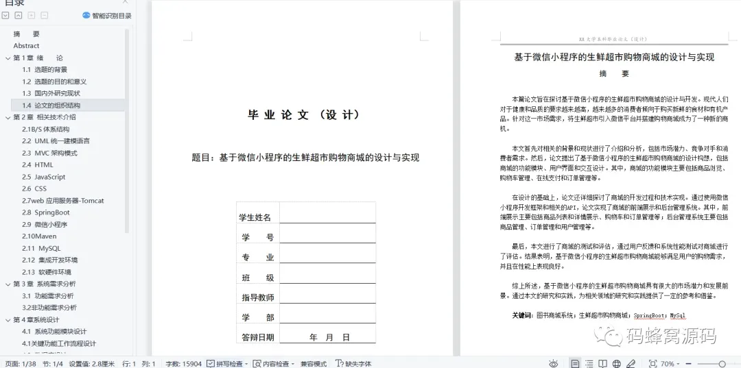 本课程演示的是一款基于SpringBoot+Vue+小程序的生鲜超市购物商城,主要针对计算机相关专业的正在做毕设的学生与需要项目实战练习的 Java 学习者。