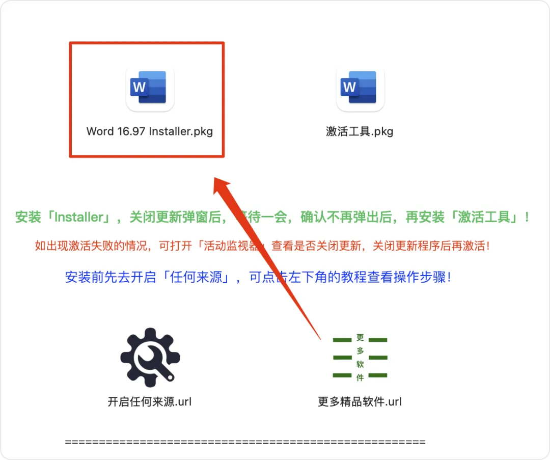 3、打开安装包,然后双击【Word 16.97 Installer.pkg】安装程序进行安装;