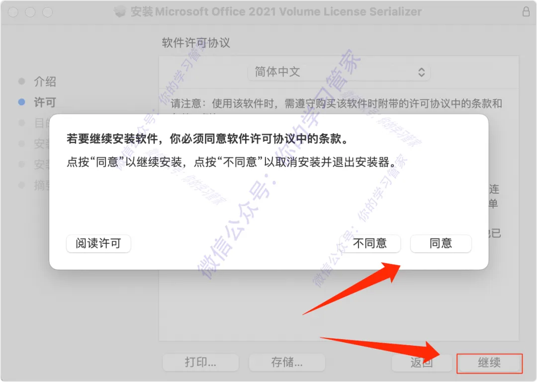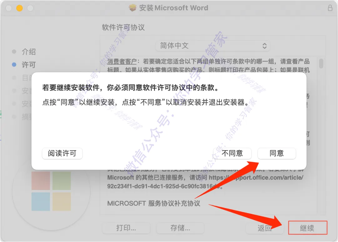 12、点击【继续】,然后点击【同意】;
