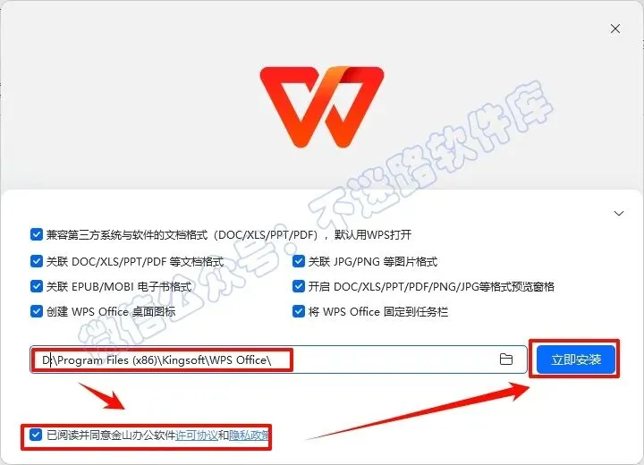 4.选择软件安装路径,建议和教程中的保持一致,本例安装到D盘(将路径地址中的首字符C改为D表示安装到D盘,安装路径不要出现中文),勾选“已阅读…”,点击“立即安装”