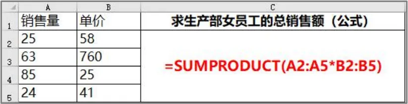 书写规则:=sumproduct(区域1*区域2)