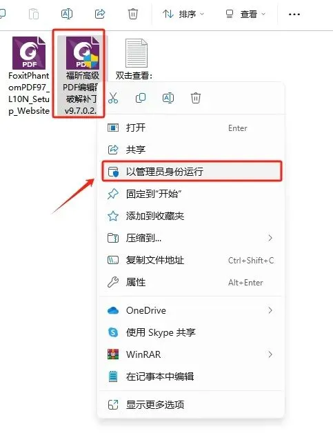 ①以管理员身份运行【福昕高级PDF编辑器 破解补丁v9.7.0.29478_new】