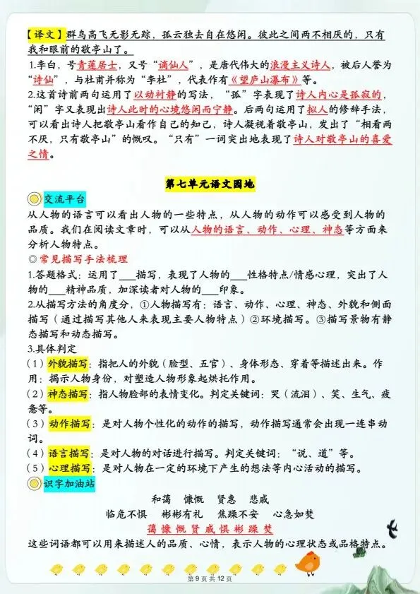 四年级下册语文园地必考考点归纳(完整电子版可打印)