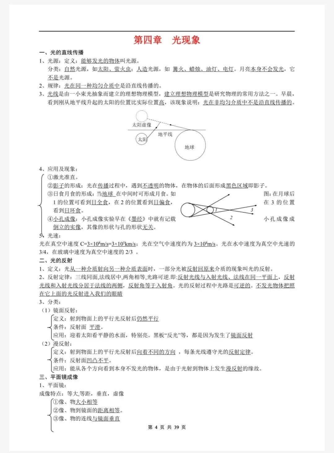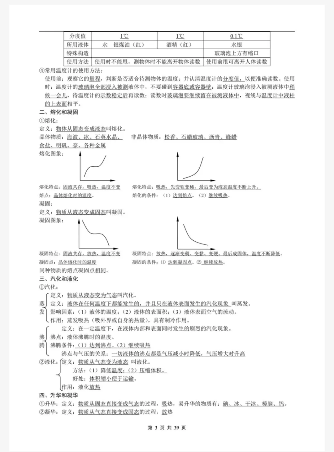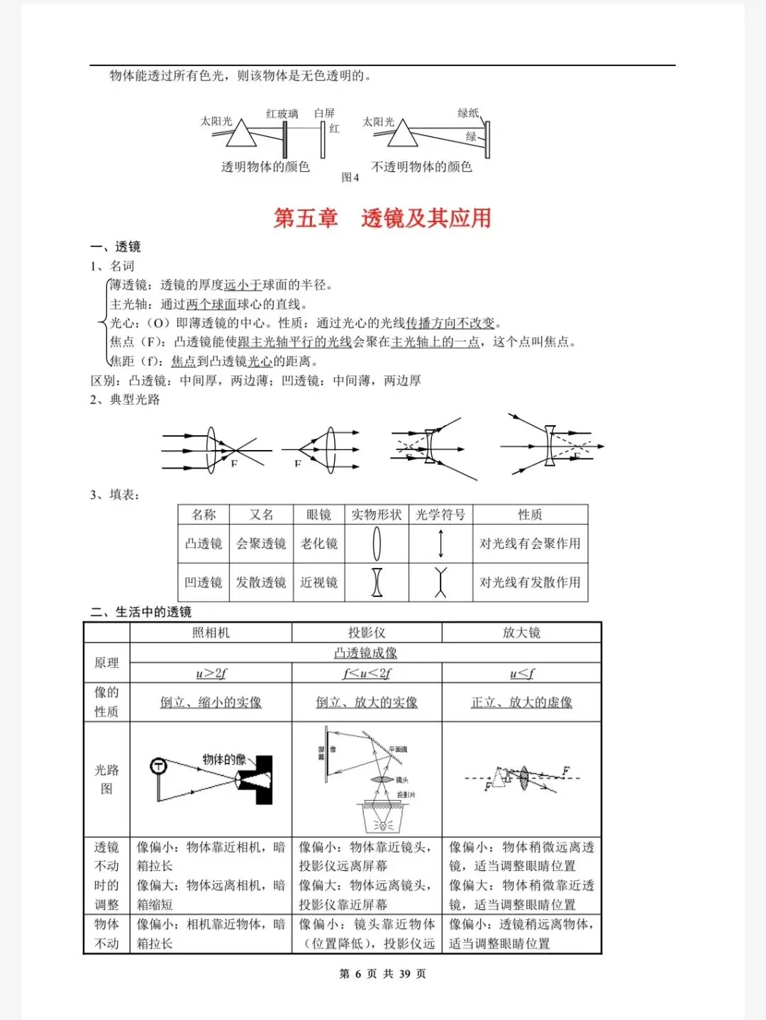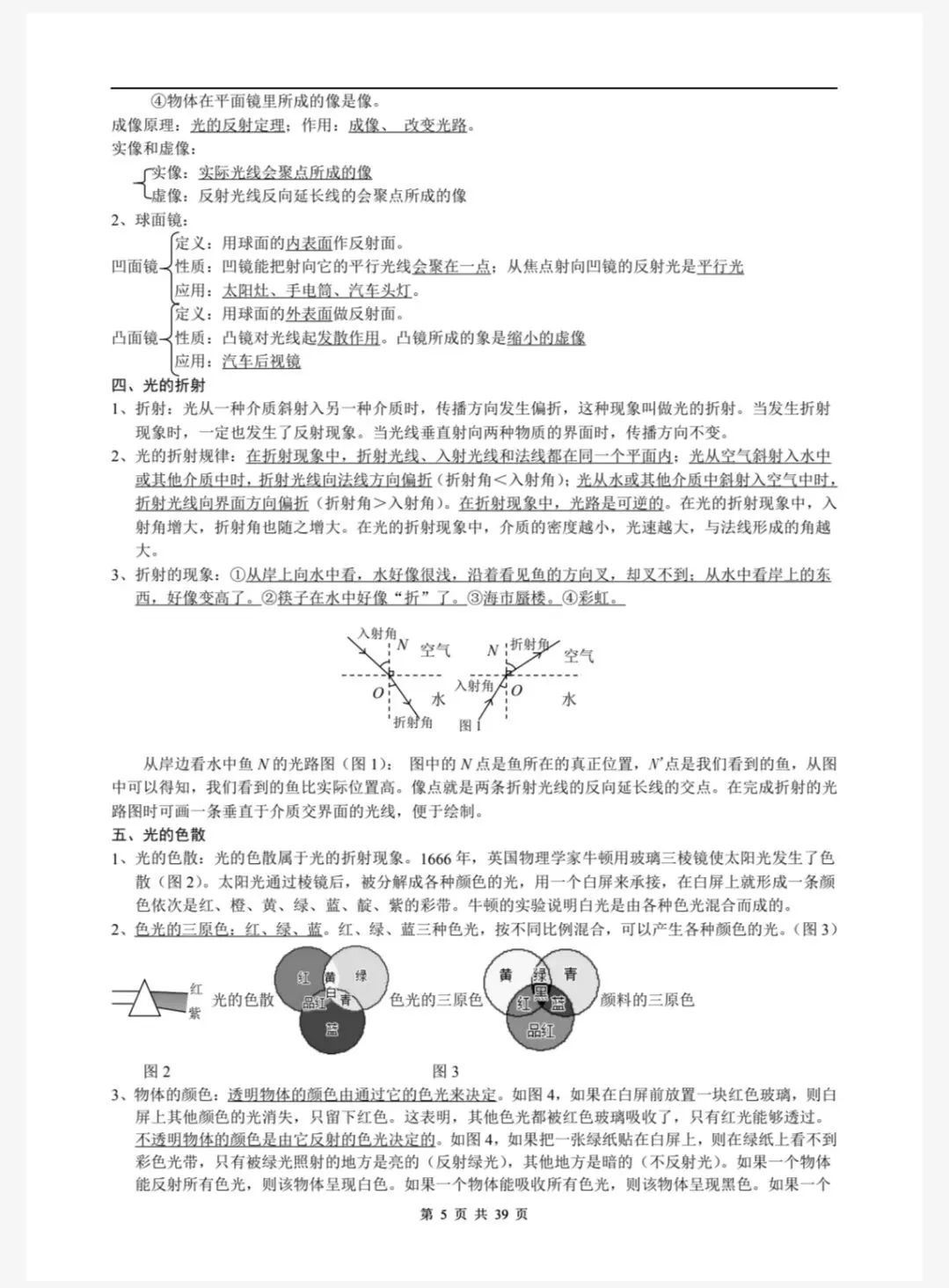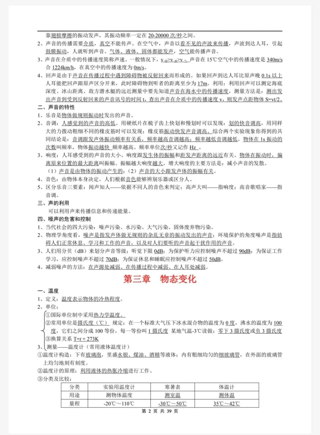 (超详)初中物理知识点归纳总结(打印版) 涵盖整个初中物理 共39页 附链接可下载