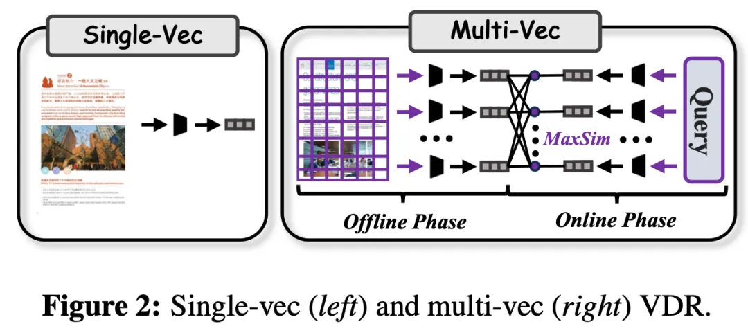 先看技术总结,其实还是应用型技术,RAG方案,围绕多模态大模型视觉文档检索(VDR,从大规模视觉文档库中检索相关内容的多模态检索任务),如下∶