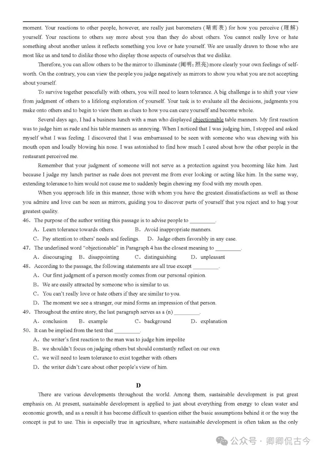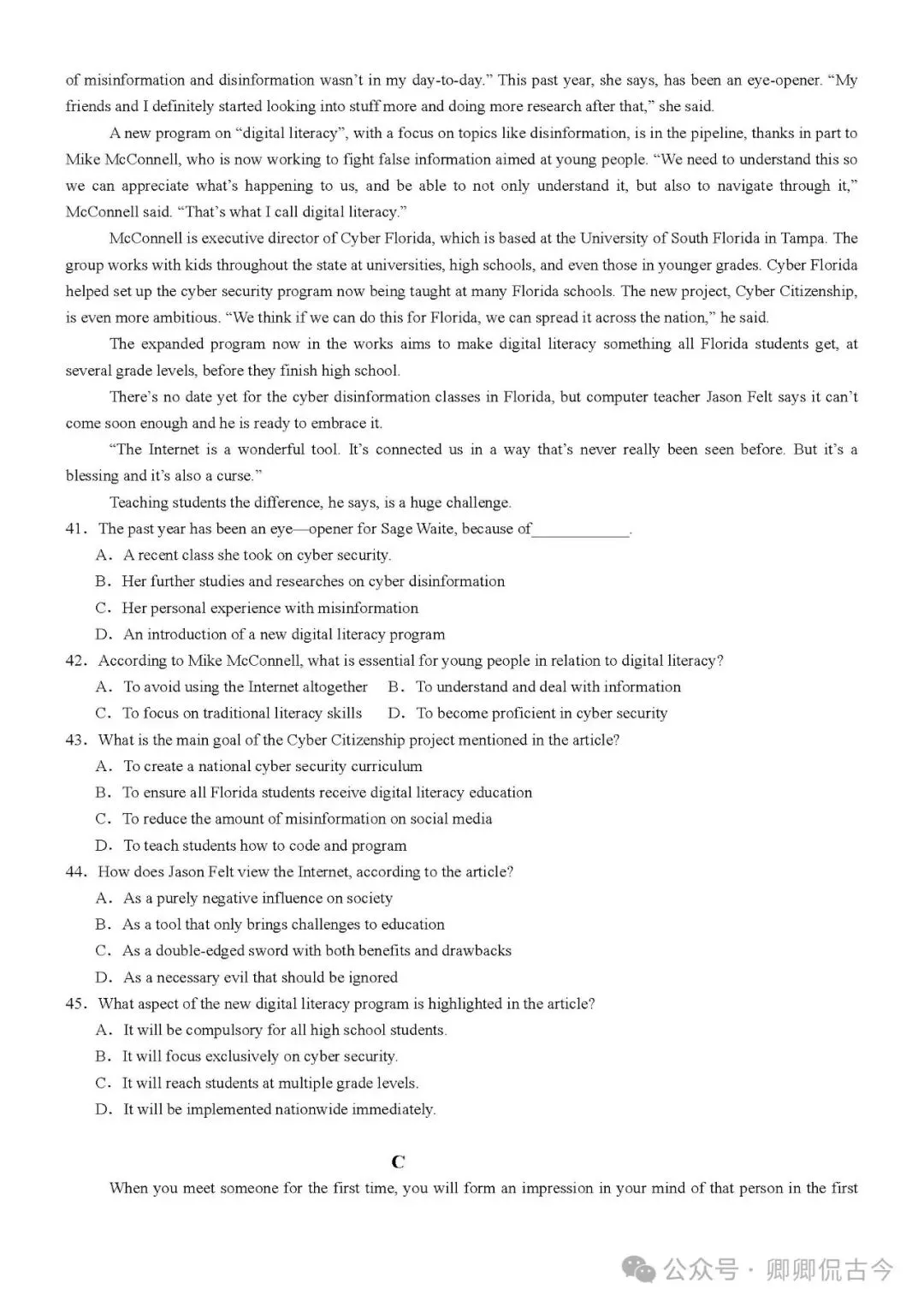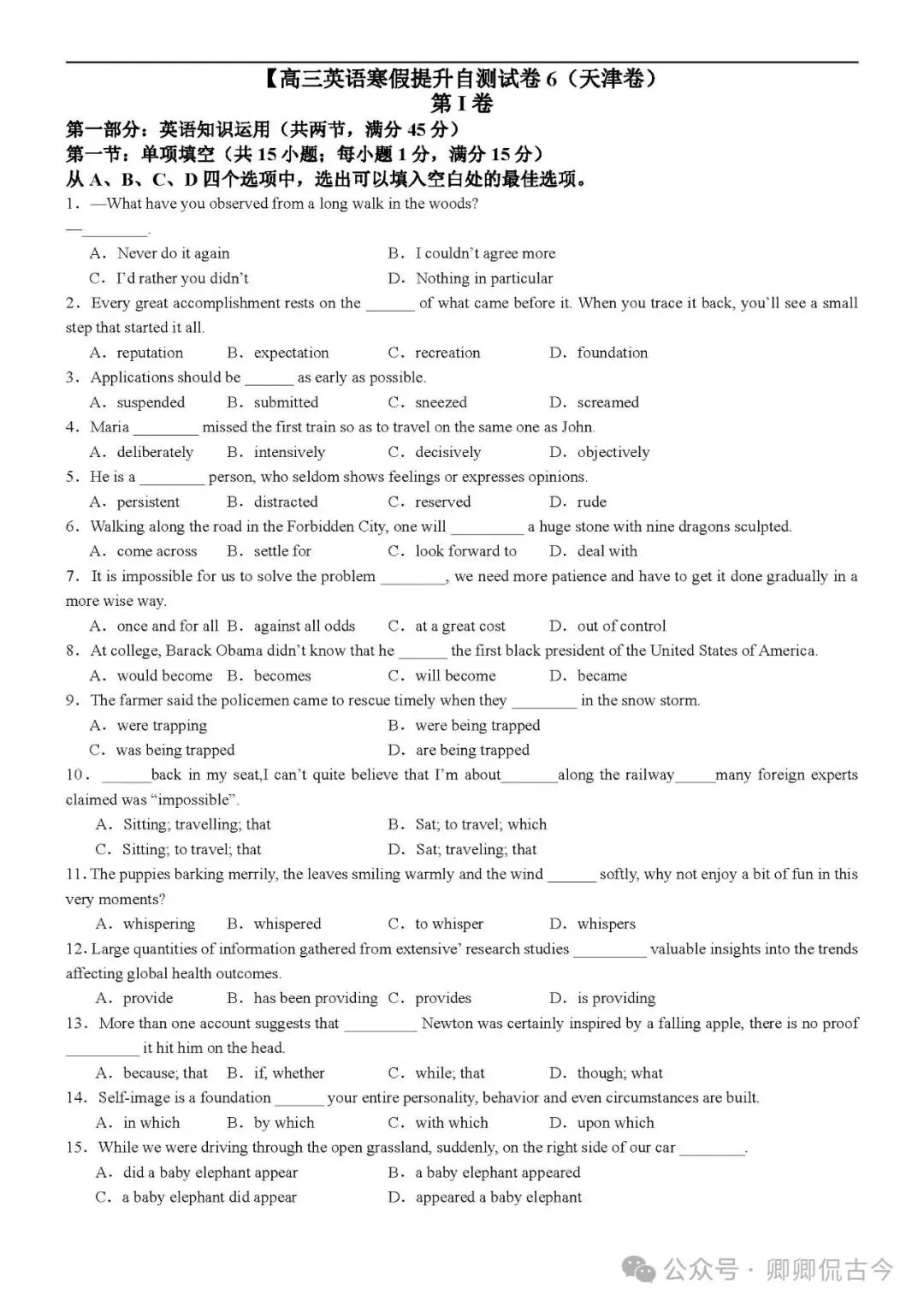 【可打印】高三英语寒假提升自测试卷6(天津卷)(附解析) 点击上方“蓝字”免费关注! 本套试卷+答案解析下载入口 关注“卿卿侃古今”公众号 点击左下角阅读原文可下载 相关链接: 【可下载】2025-2026年高中英语试题汇总(附解析)【持续更新中】 【可下载】高三英语上学期期末试题16套(附解析) 【可下载】高二英语上学期期末试题10套(附解析) 【可下载】高一英语上学期期末试题汇9套(附解析) 【可下载】2025-2026学年度高一高二高三开学考试模拟试卷(天津专用)(附解析) 新外研版高中英语高清电子课本、课文原文和译文、单元同步复习资料和试题【持续更新中】 【可下载】2025-2026单选综合训练150题 【目录1】高中英语阅读理解限时训练大全(持续更新中~) 【目录2】高中英语完形填空限时训练大全(持续更新中~) 【目录3】高中英语书面表达大全(持续更新中~) 【目录4】高中英语听力训练大全(持续更新中~) 【目录5】高中英语单选题大全(持续更新中~) 【目录6】高中英语语法题大全(持续更新中~) 【目录7】高中英语阅读表达题大全(持续更新中~) 【目录8】科普知识汇总 【目录9】中高考学法知识汇总 【目录10】高考英语真题+名校模拟真题+月考和期中期末试题(持续更新中~) 【目录11】暑期高考英语备考资料大全持续更新中~【汇总】中高考志愿填报资料大全 【汇总】高中英语月考和期中期末试题(持续更新中~) 【汇总】2025届高三英语一模试题(附解析) 【汇总】2024届高三英语一模二模三模试题(附解析) 【汇总】2024届高考英语押题卷(附解析) 【汇总】2025届高三英语周考综合练(附解析) 【题库】高三英语限时训练(持续更新中~) 【题库】高三英语试题汇编(持续更新中~) 【题库】高二英语试题汇编(持续更新中~) 【题库】高一英语试题汇编(持续更新中~) 【真题】2007-2024年天津市高考英语真题(持续更新中~) 【真题】2011-2023年天津高考英语听力真题在线测试 【模拟】2025届高三英语听力机考模拟试题在线测试 【高考词汇】(新)外研版高中英语全七册词汇表(附音频) 【中考词汇】初中英语外研版必备单词表(完整版),可打印 建议收藏保存 点击阅读原文查更多