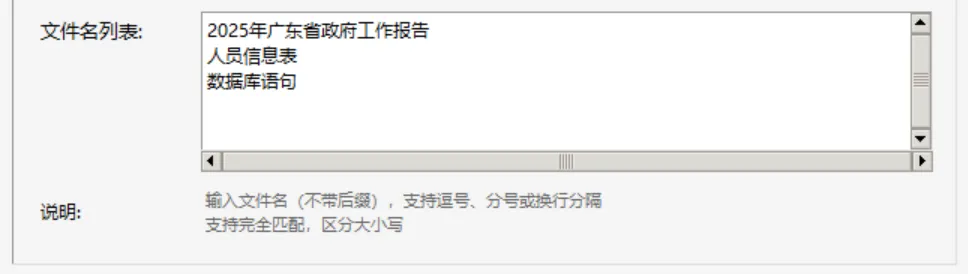 四、输入文件名:批量输入需要提取的文件,使用英文逗号或换行分割。