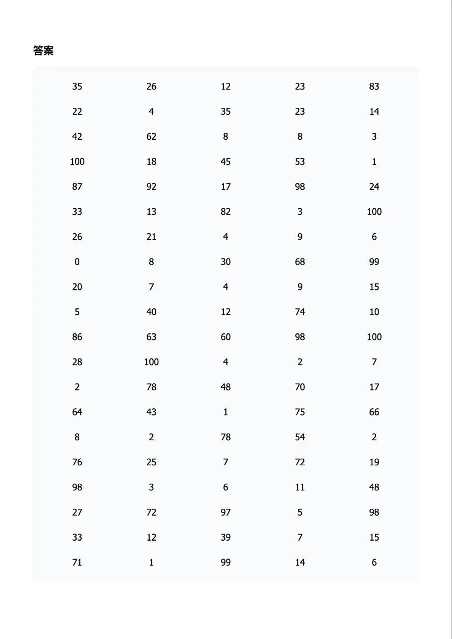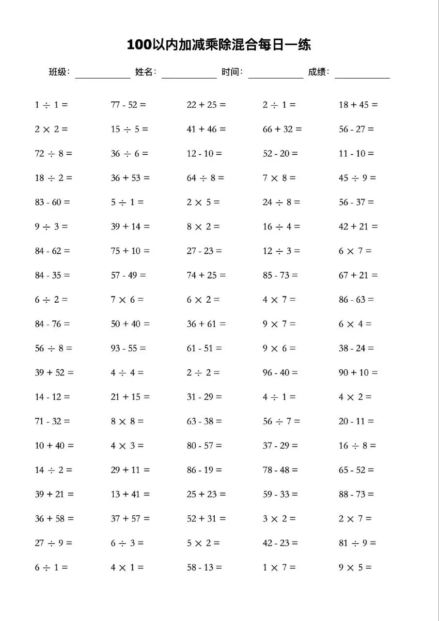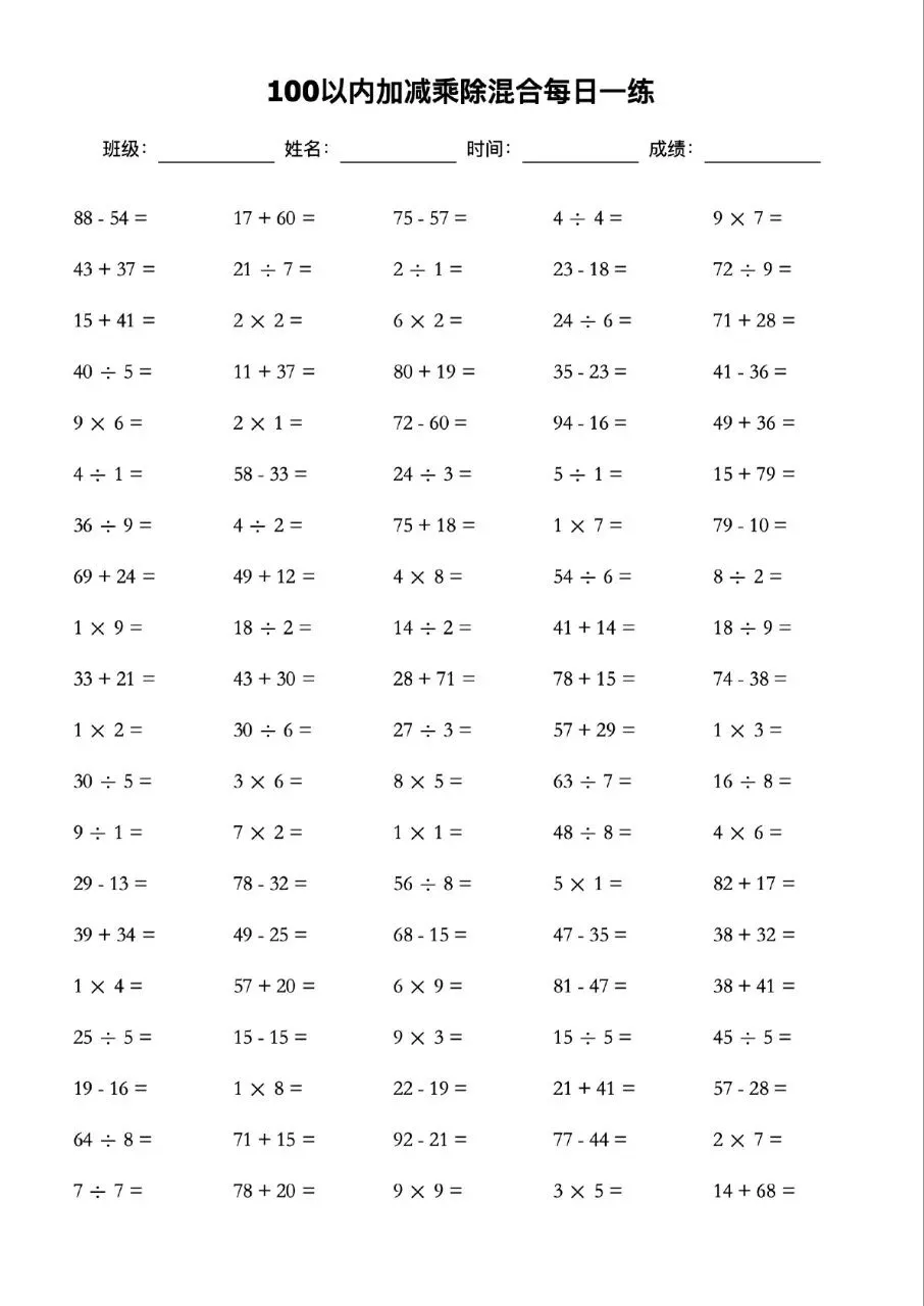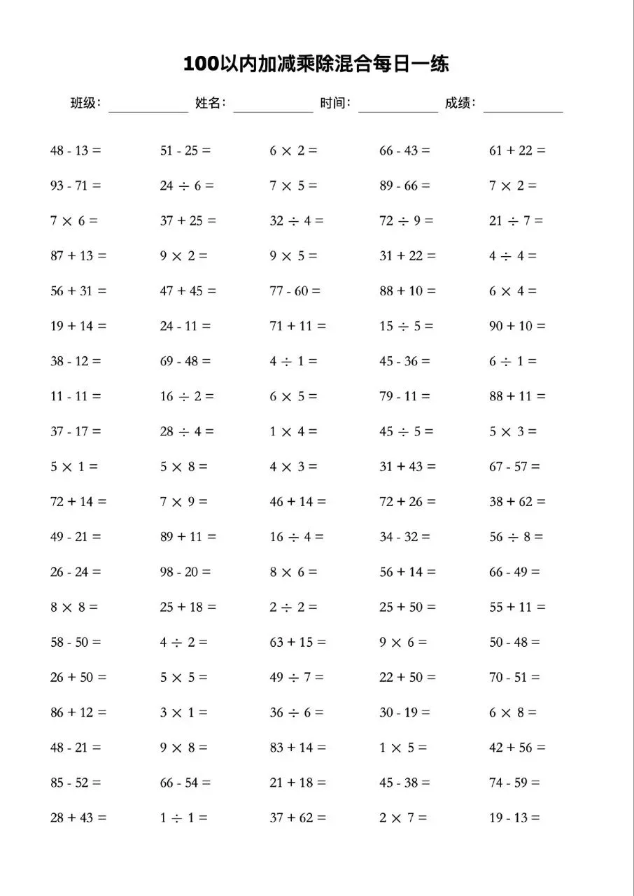 本站文章均为手工撰写未经允许谢绝转载:夜雨聆风 » 100以内的加减乘除混合口算题卡每日一练可打印电子版带答案