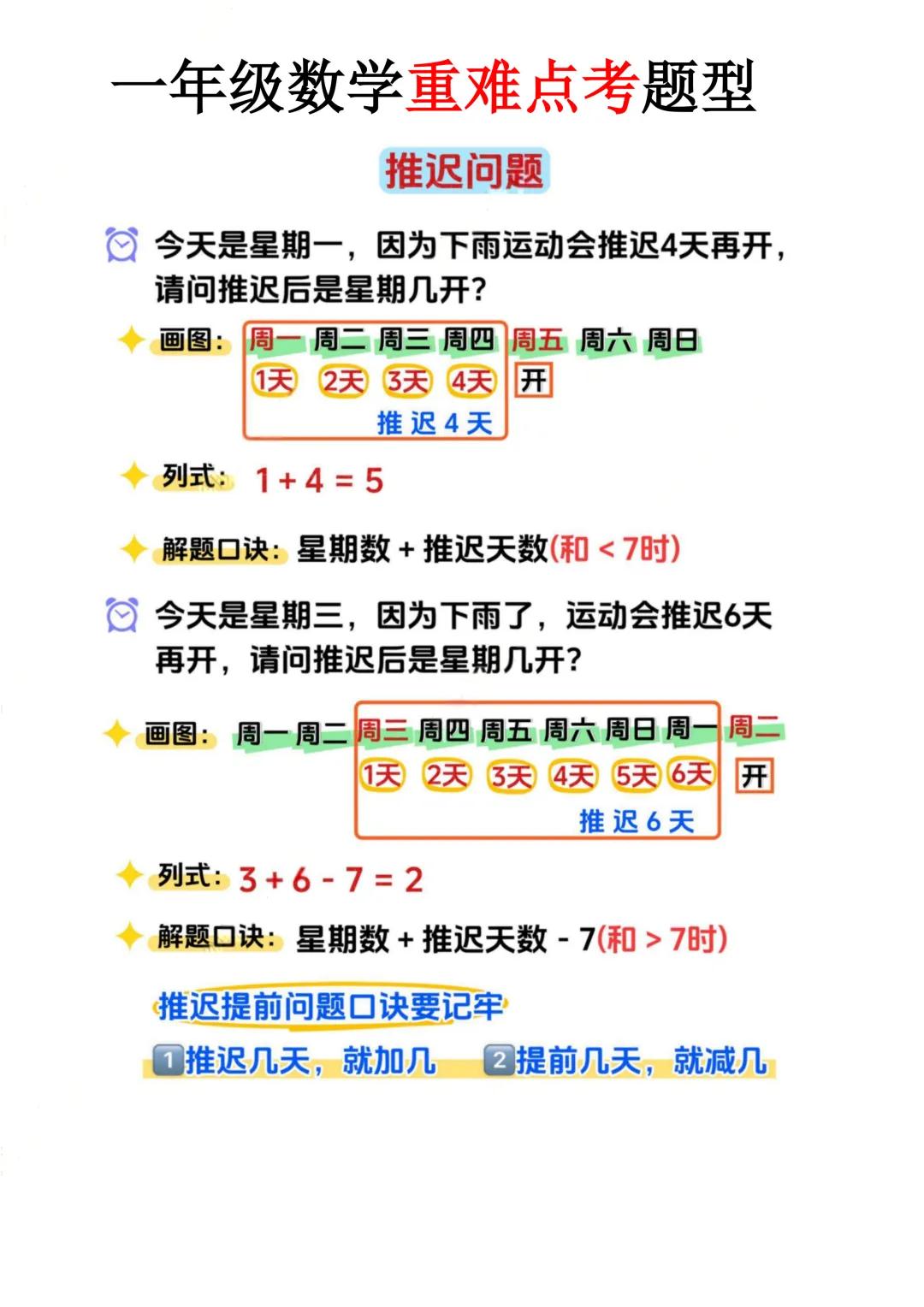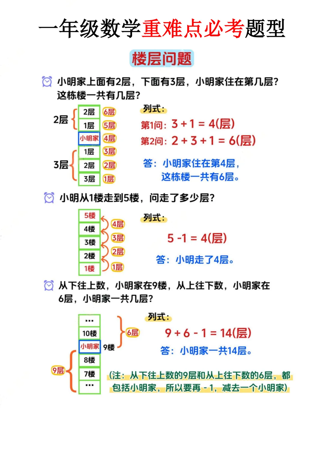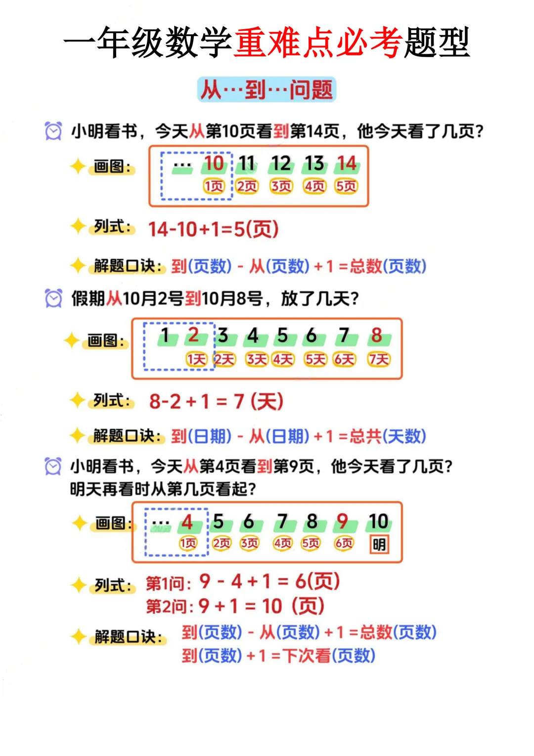 今天为大家分享:一年级数学的学习,重在建立清晰的逻辑思维,而时间推算、页码计数、楼层问题等应用题,正是培养这一能力的关键载体。这些题目看似简单,却极易因 “漏算”“重复计算” 等细节丢分,是拉开成绩差距的核心考点。