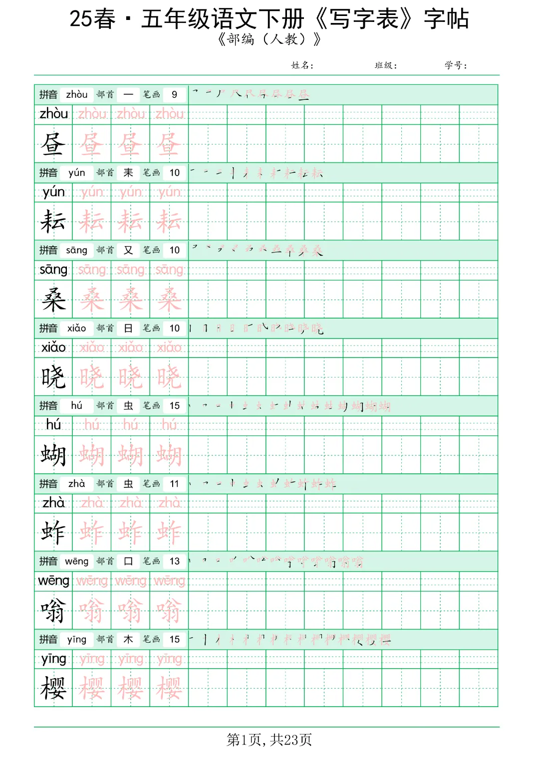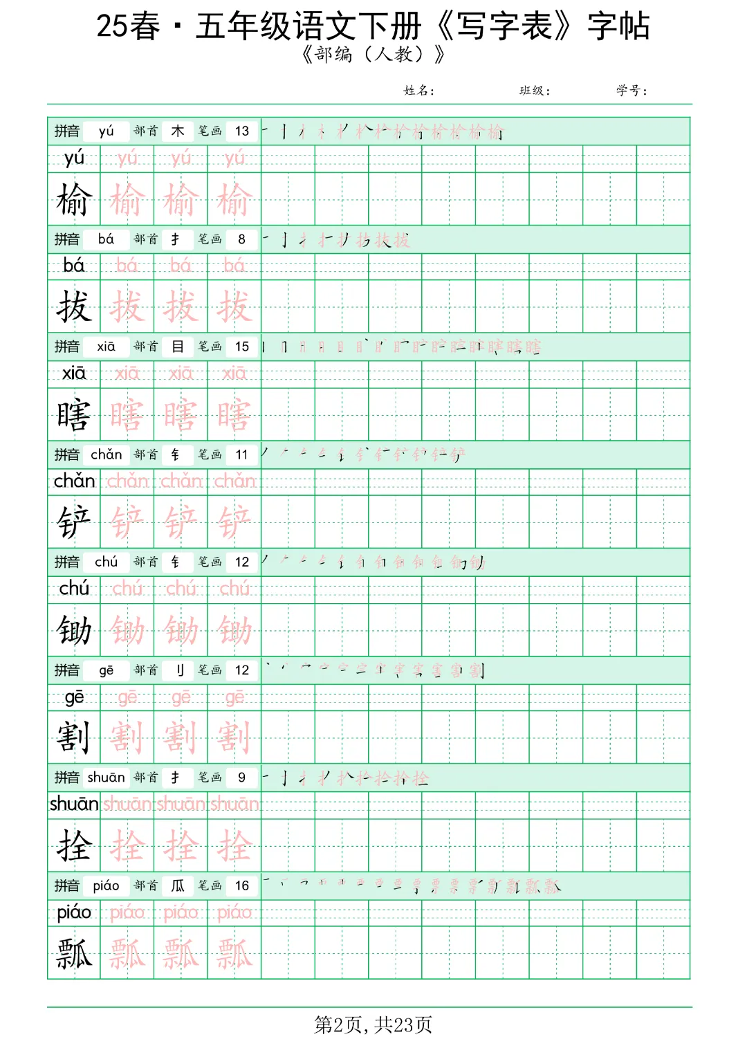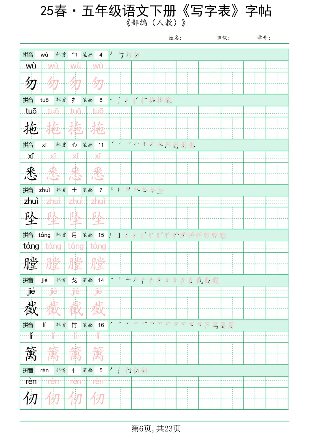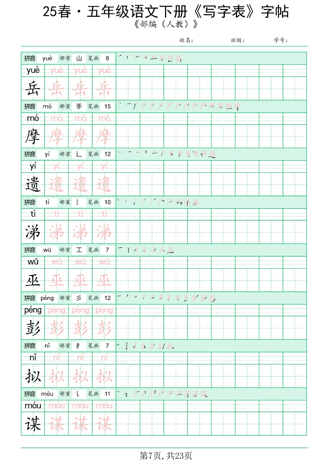 今日分享《五年级语文下册写字表》电子版可打印。共42页