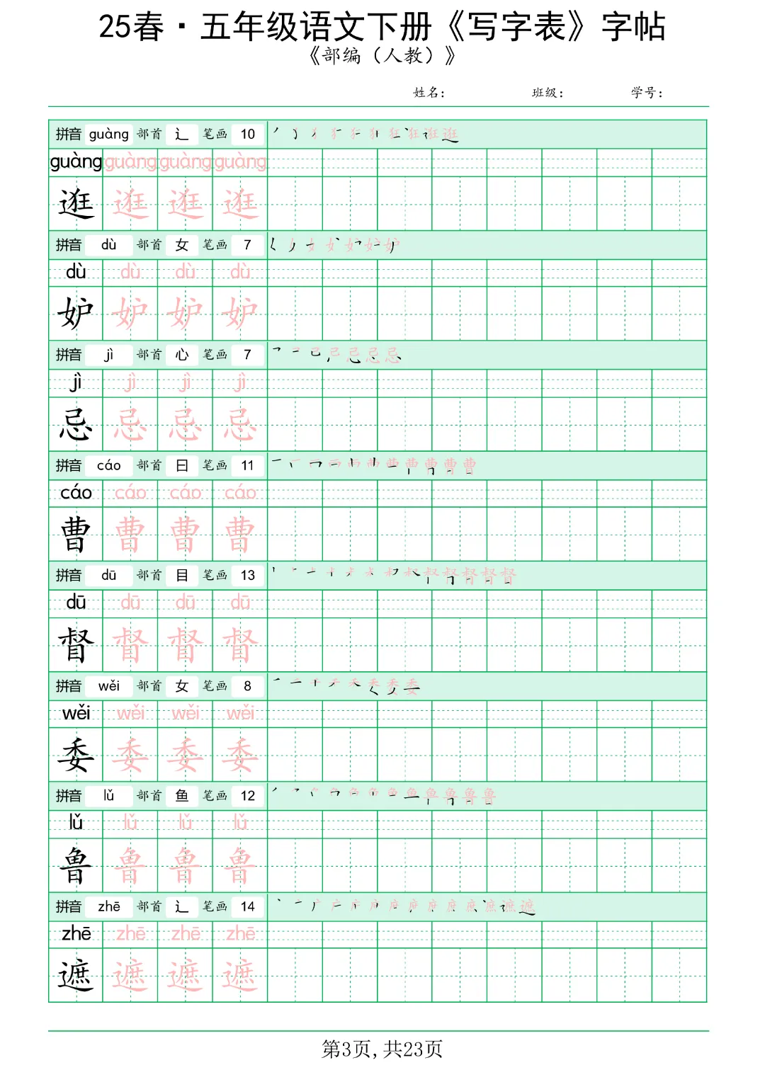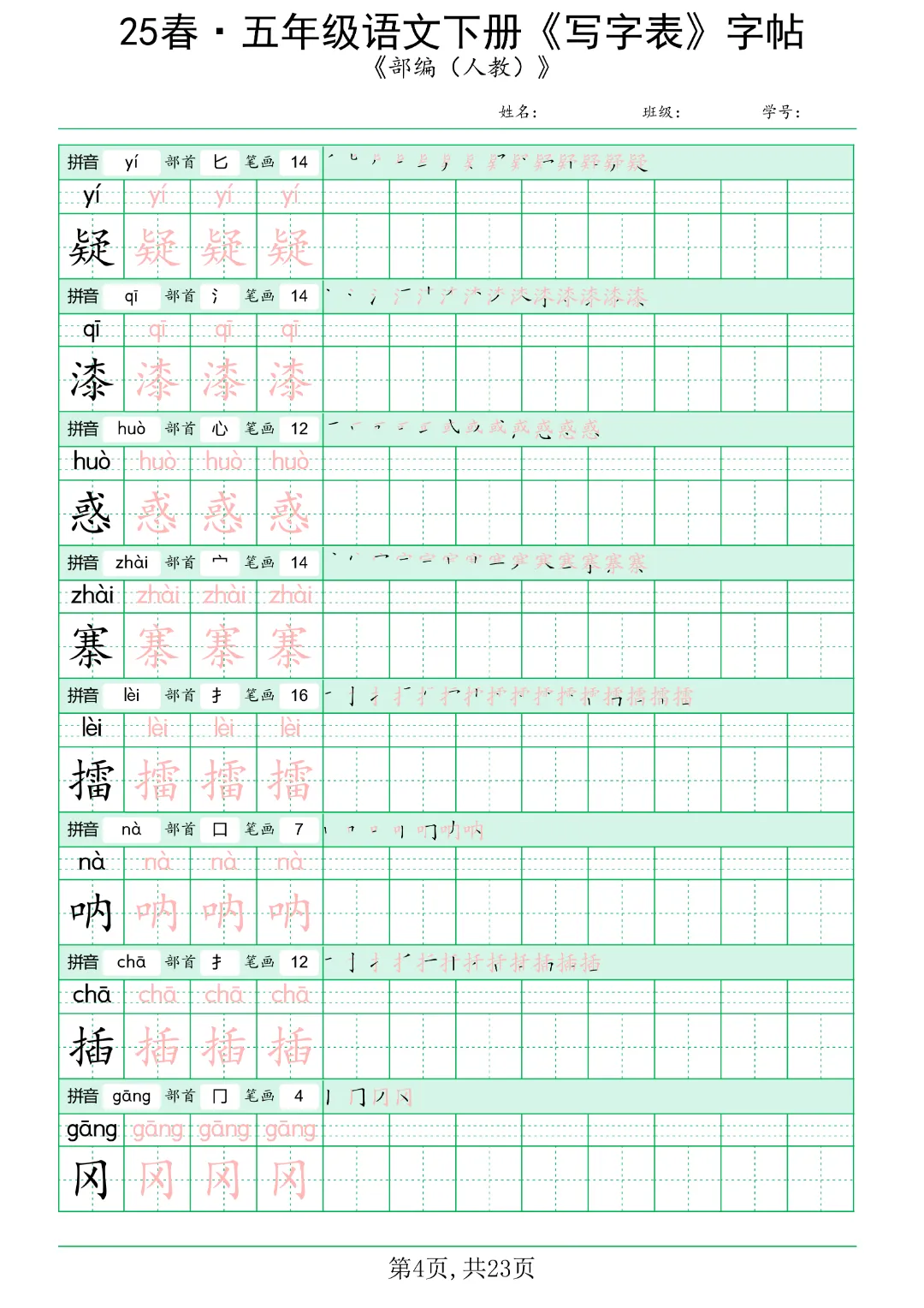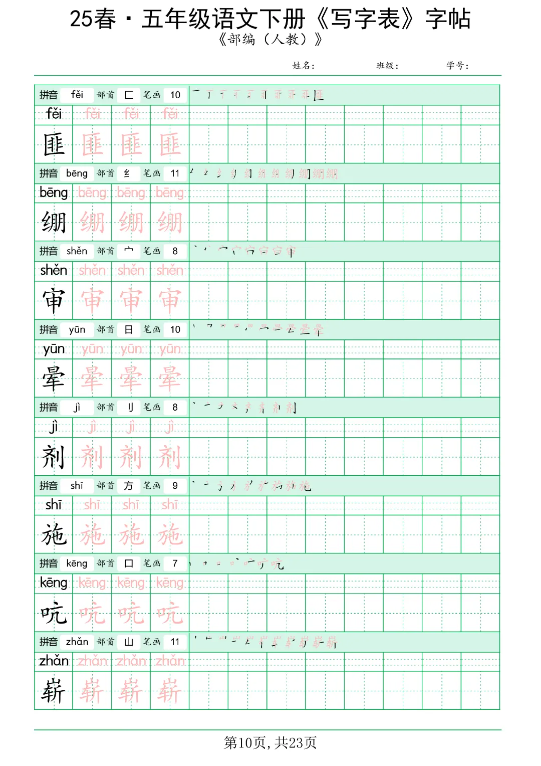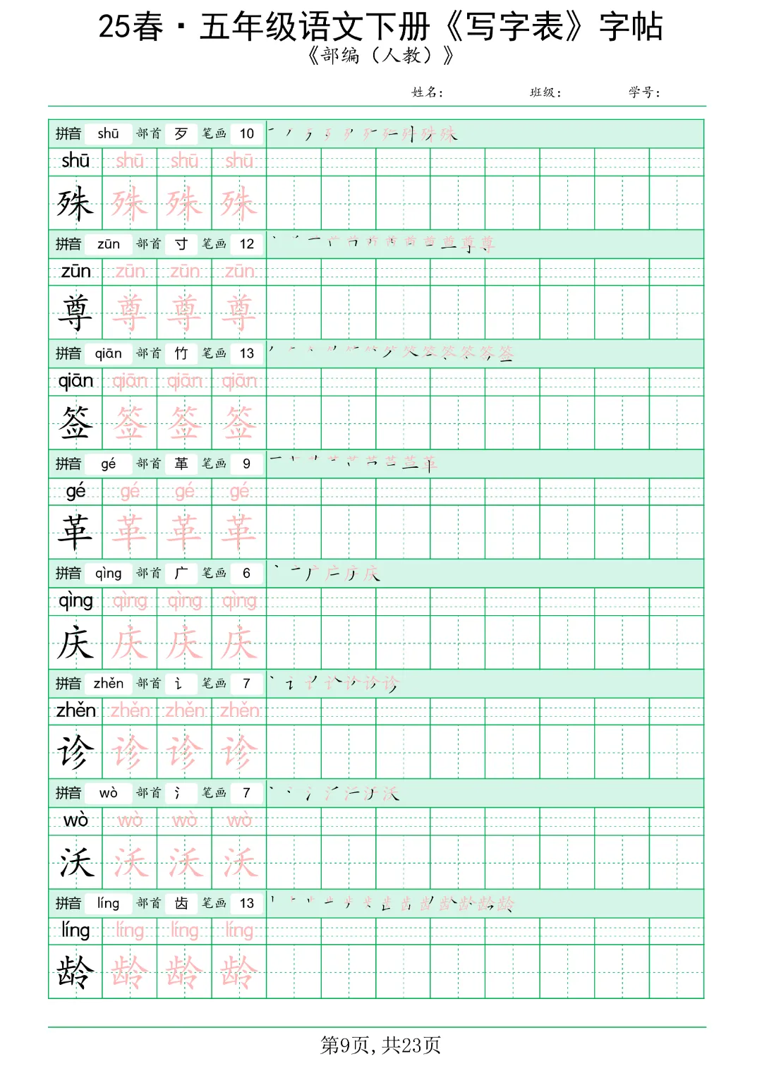 今日分享《五年级语文下册写字表》电子版可打印。共42页