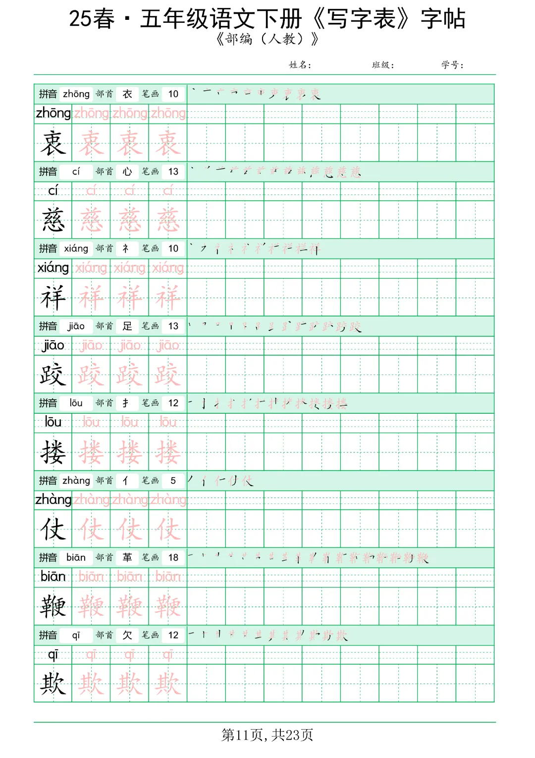 对于五年级下册的学生来说,使用与教材同步的写字表练字帖,其重要性已经超越了简单的“写对字”,它更像是一位“全能备考导师”。在这个小学向初中过渡的关键期,字帖不仅是巩固基础的工具,更是提升综合竞争力、培养审美与文化自信的有效途径。