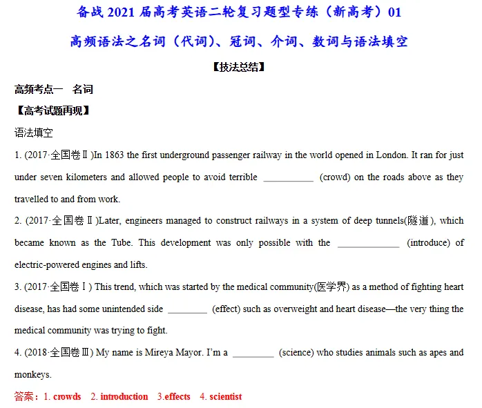 高考英语二轮复习题型专练高频语法|可下载打印 ↓↓↓更多下载内容,点击下方公众号↓↓↓ 版面有限,不过多展示 需要直接拉至文末下载 完整电子打印版免费领取方式 ▲点击上方 语数英父母学堂 在公众号消息框发送: 5129,即可免费领取
