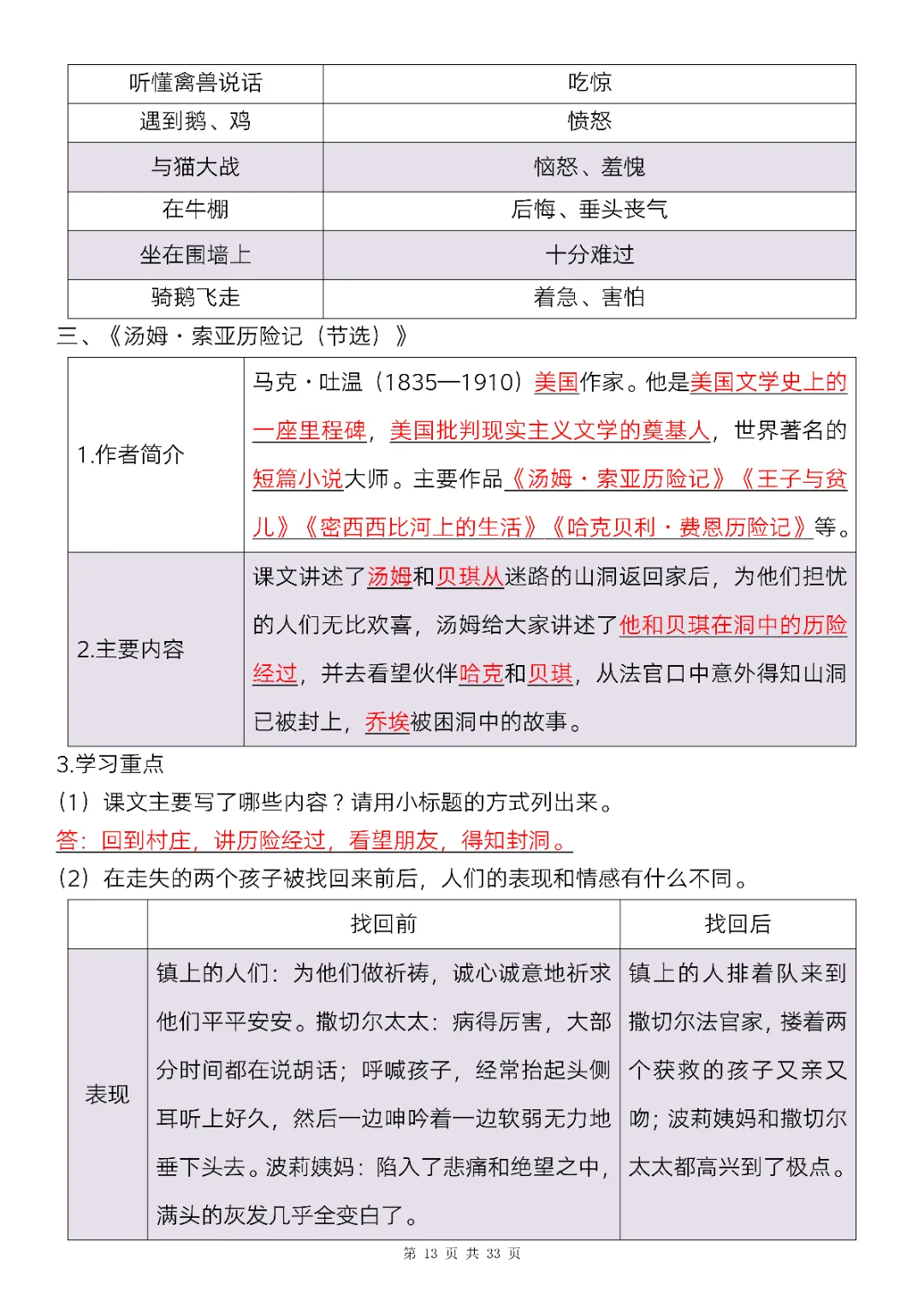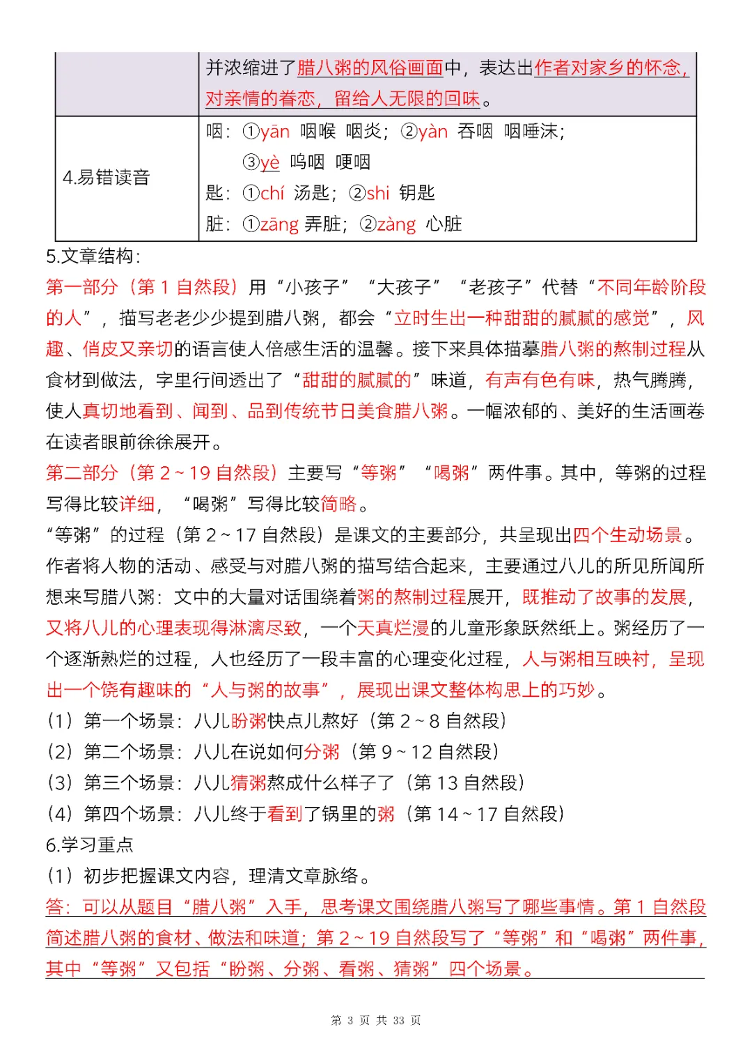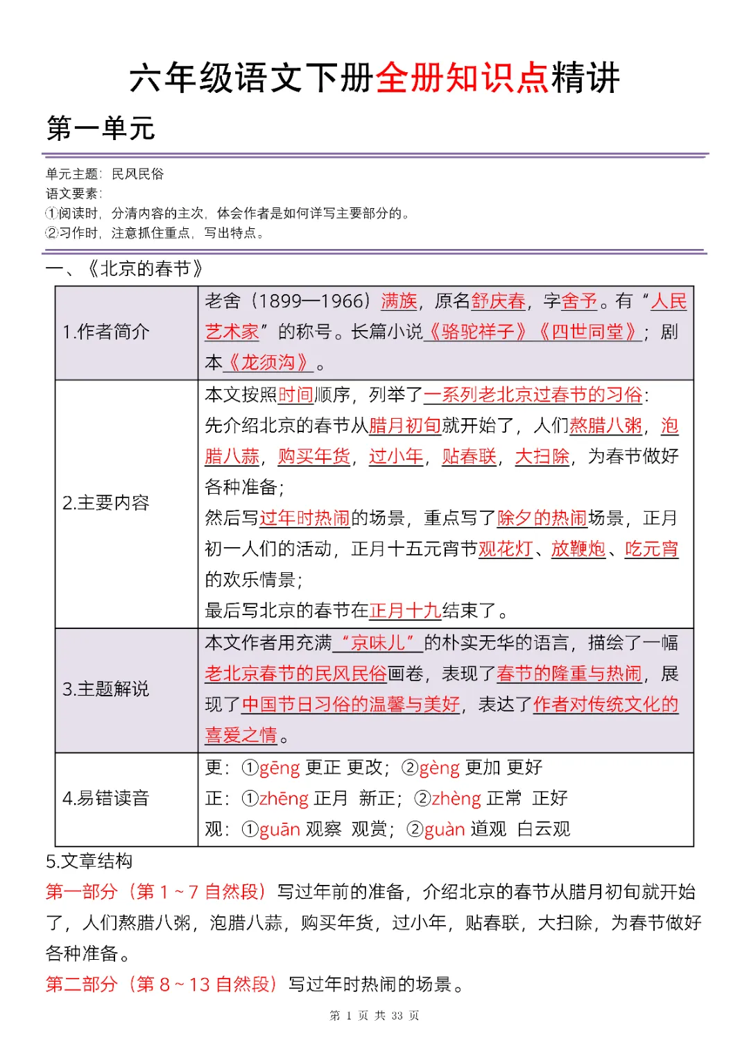 六年级下册语文全册知识点精讲33页(电子版可打印)