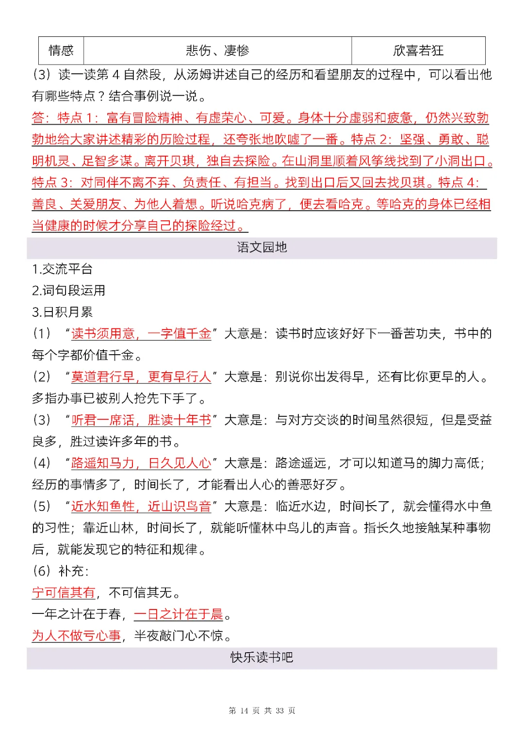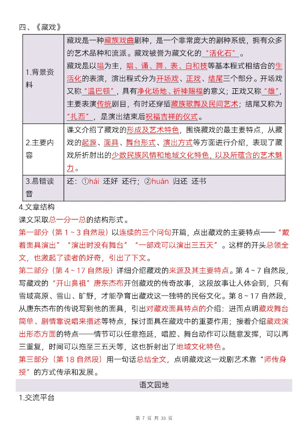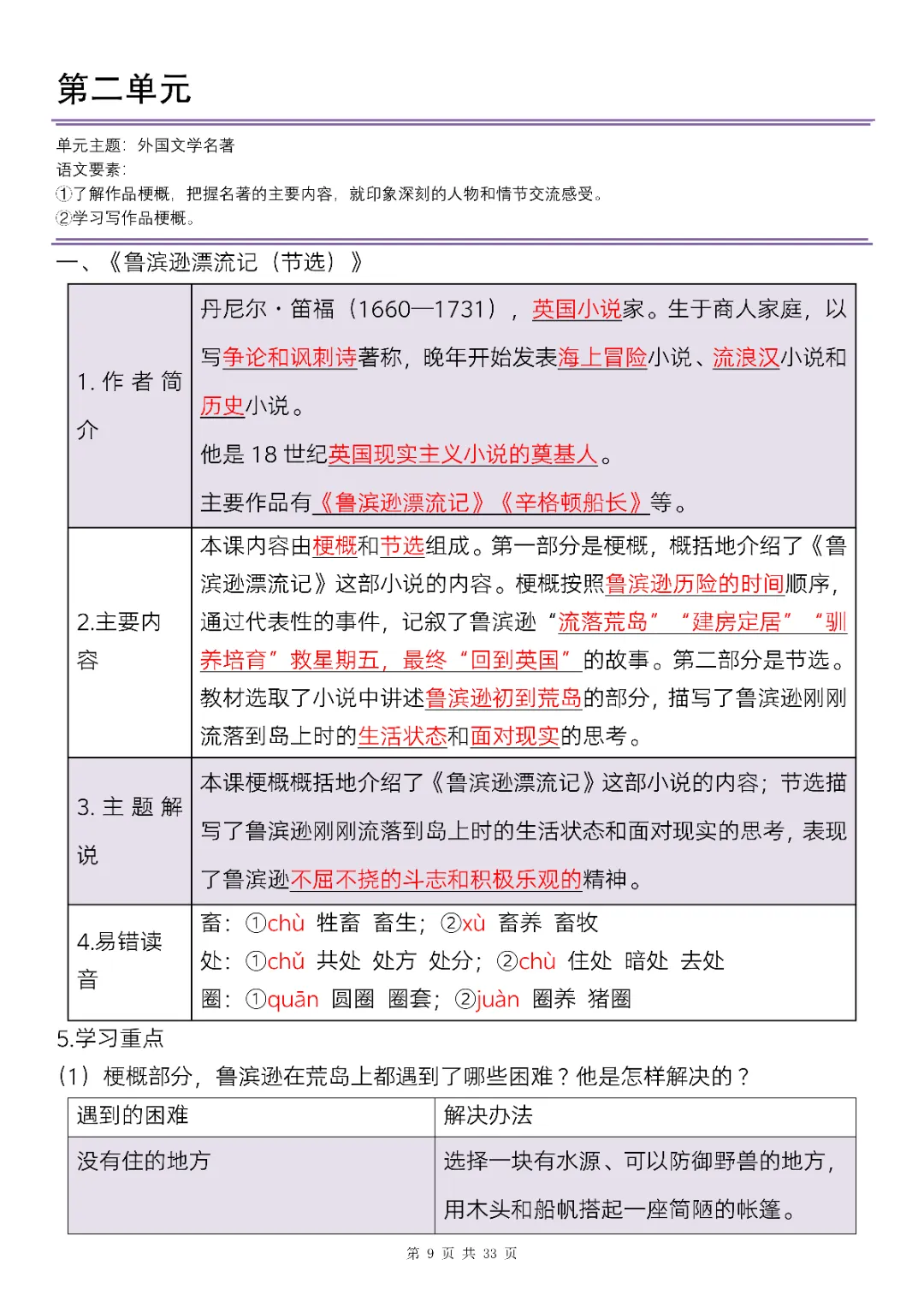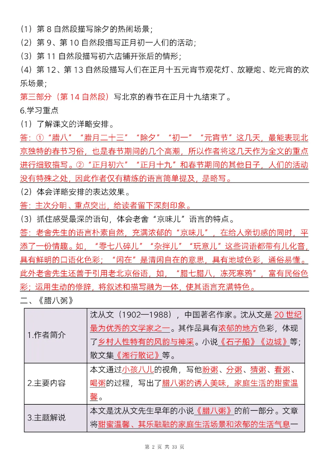 六年级下册语文全册知识点精讲33页(电子版可打印)