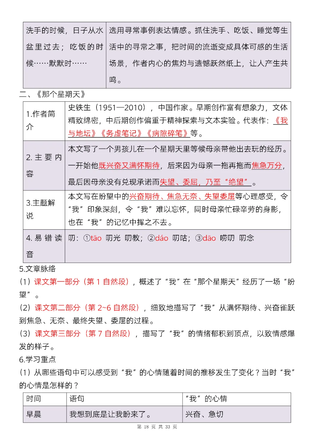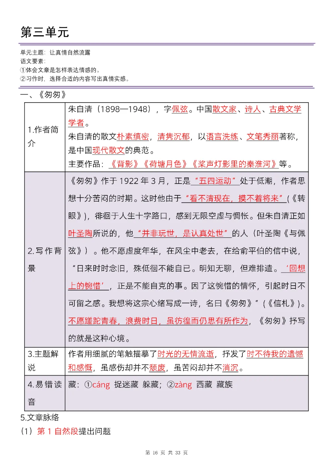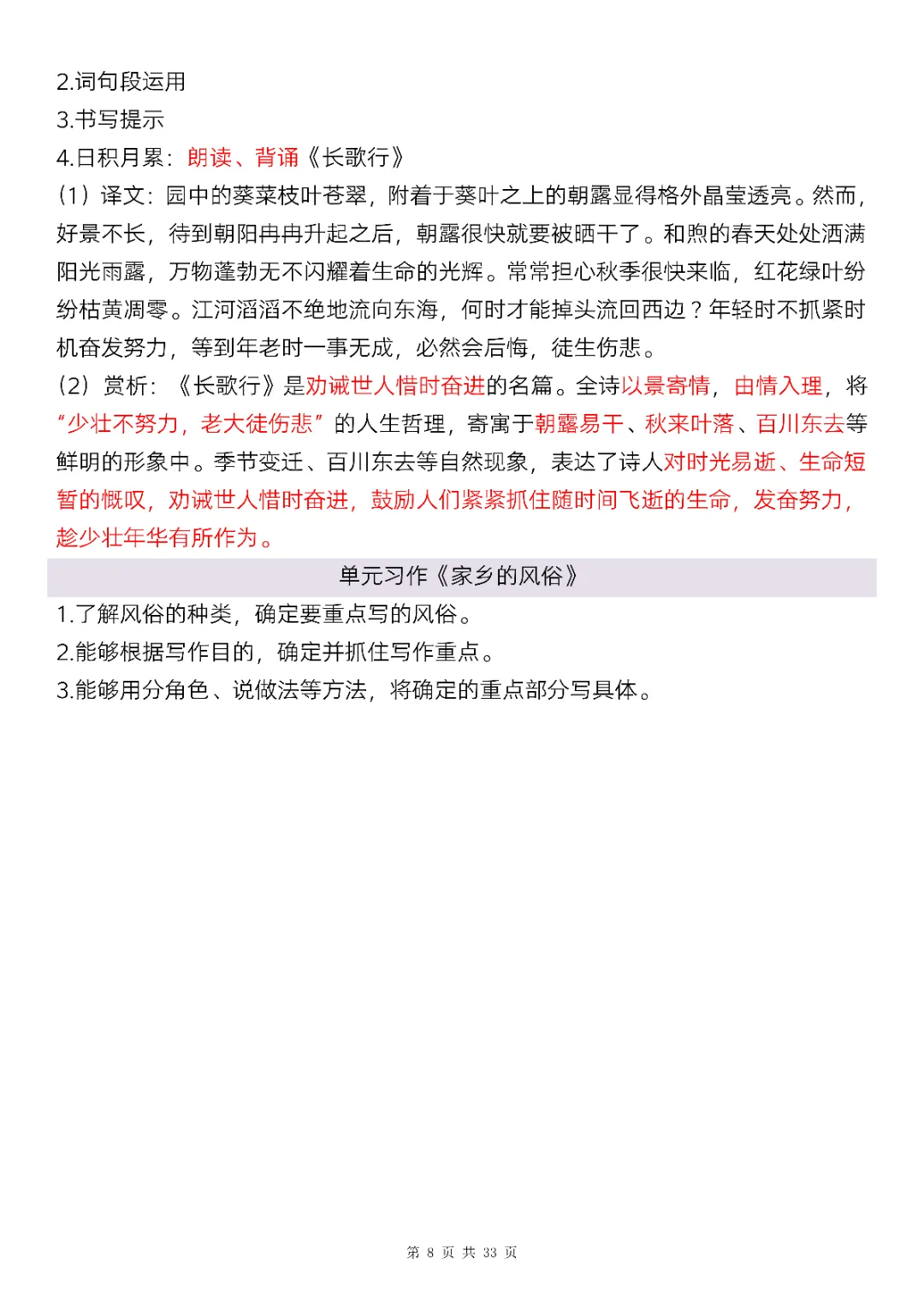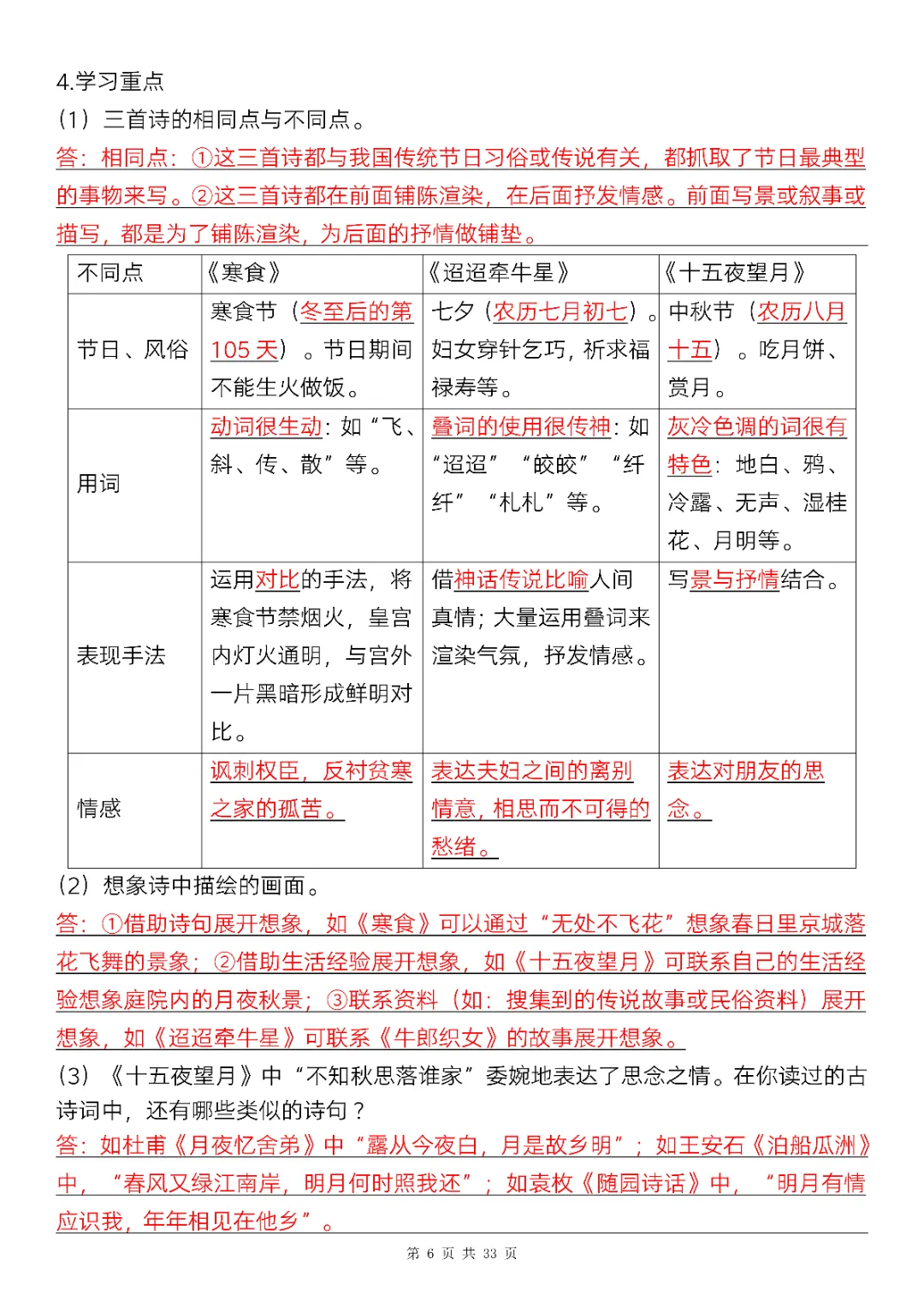 六年级下册语文全册知识点精讲33页|电子版可打印