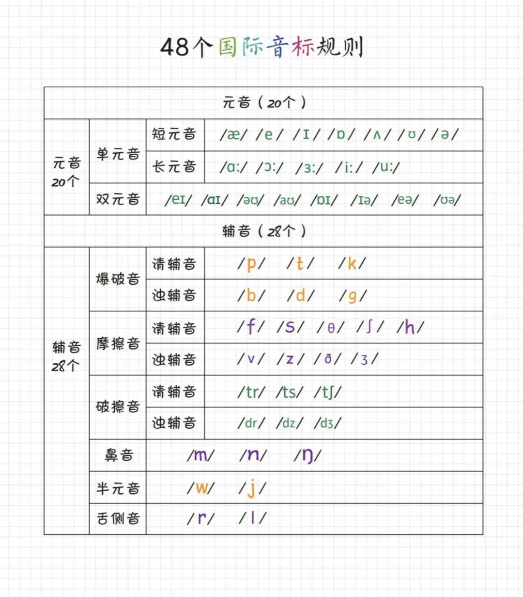 小学/初中英语《自然拼读笔记本》PDF电版,国际音标自然拼读彩绘笔记〔电子版、下载〕