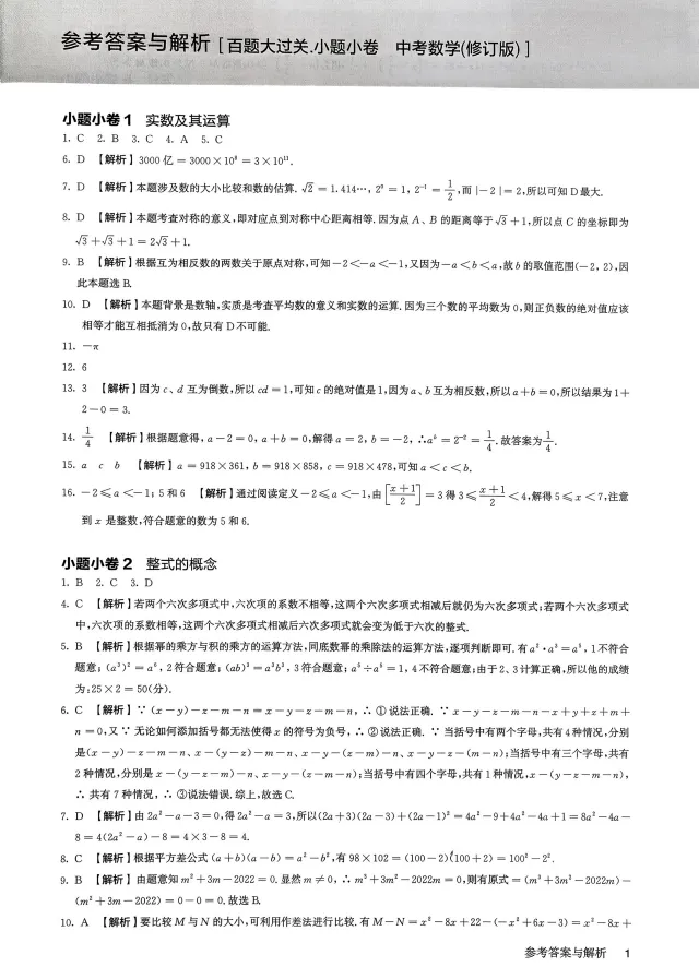 2026《初中数学•百题大过关》小题小卷答案.pdf