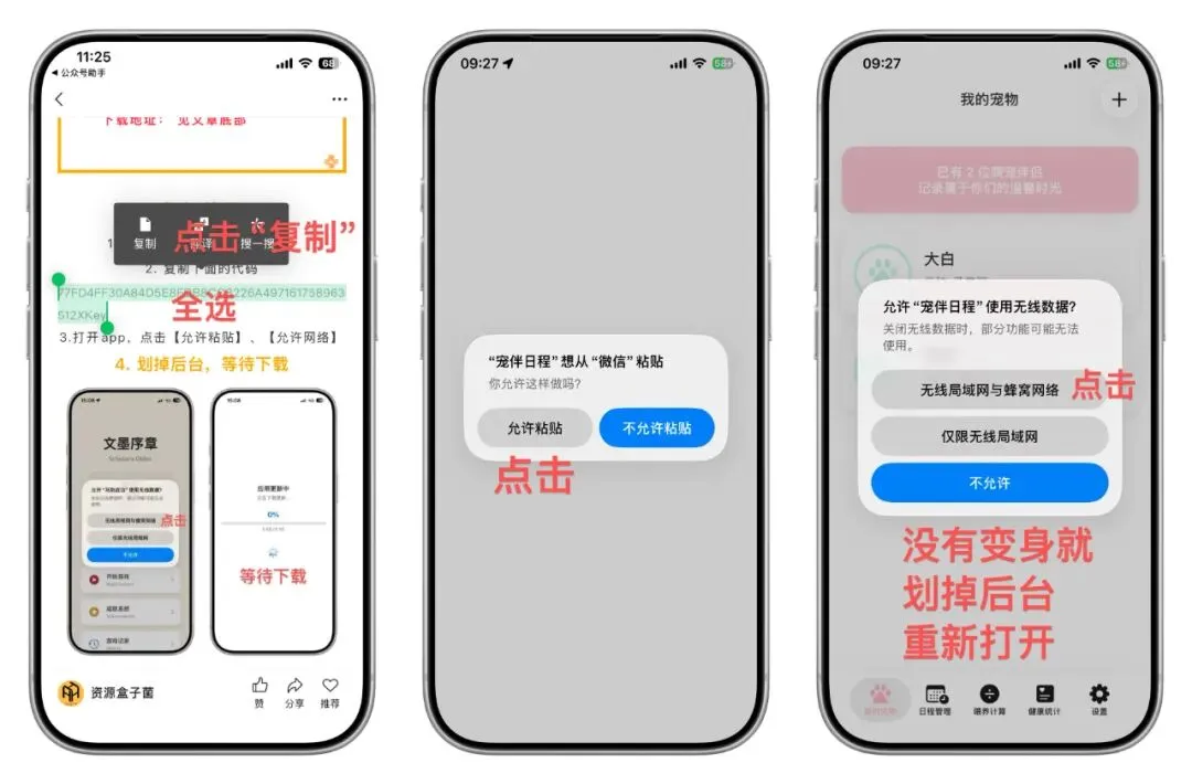 如果没有显示【允许粘贴】,卸载重装,再重新复制代码,打开APP。