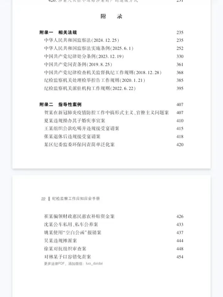 内容包括纪检监察实体法规、监督执纪工作规定、相关法规和指导性案例,适合纪检监察、法规学习参考。