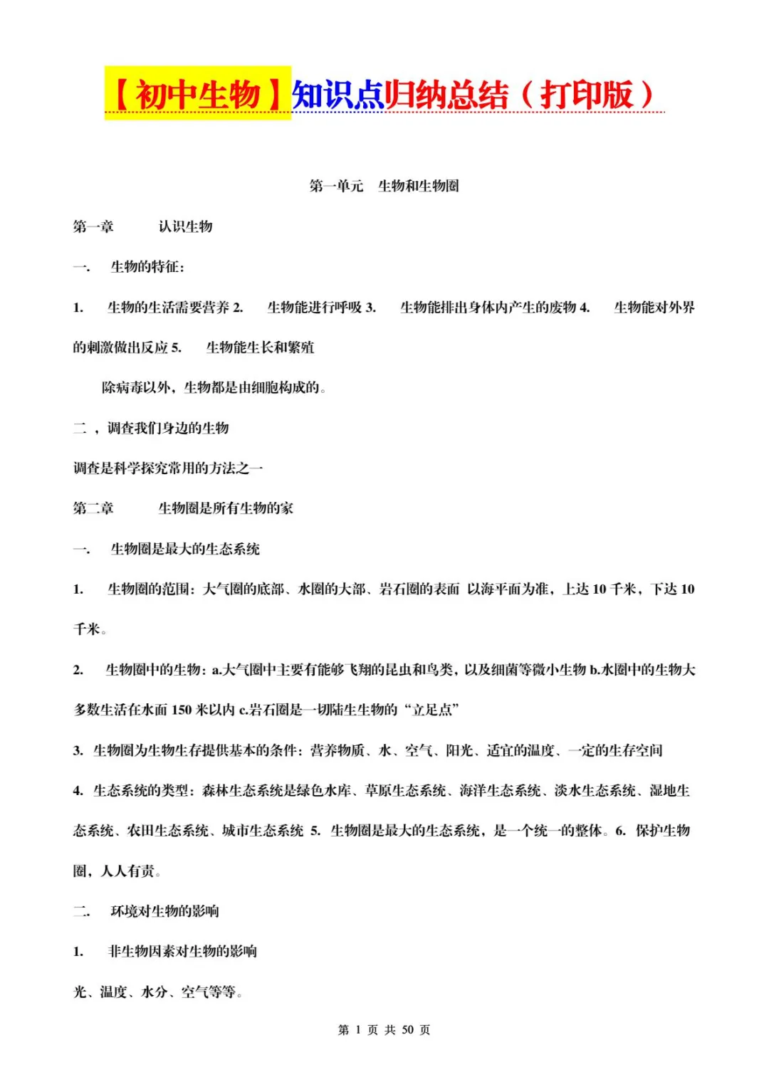 本期给各位带来的是:初中生物知识点归纳汇总 (超详细!可打印!) 如有需要,欢迎收藏、转发,实时更新! 保存后若有更新也会同步提示!