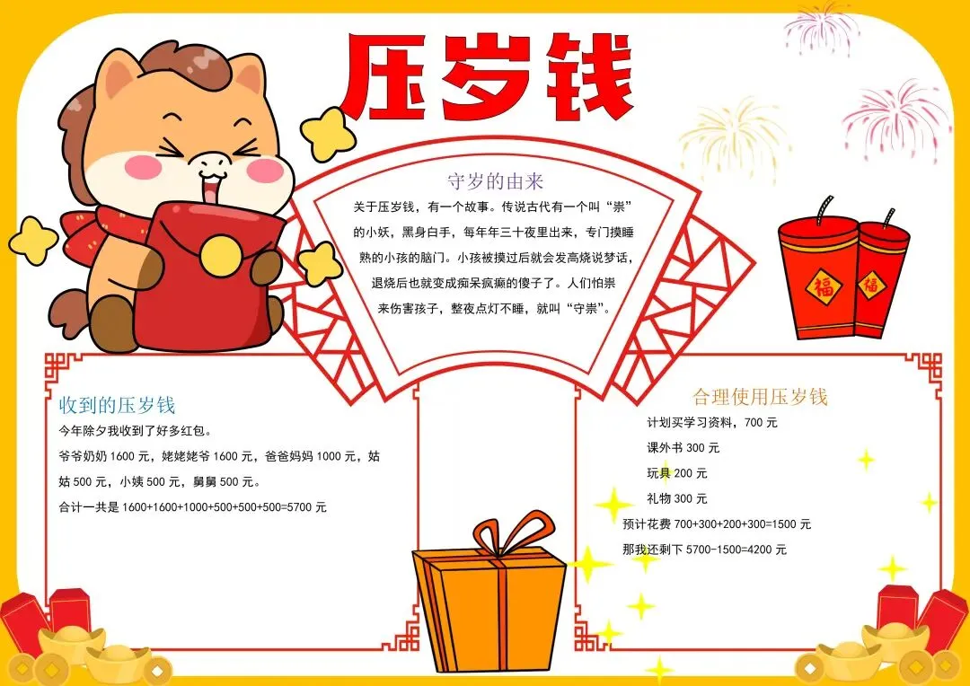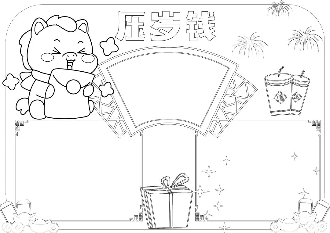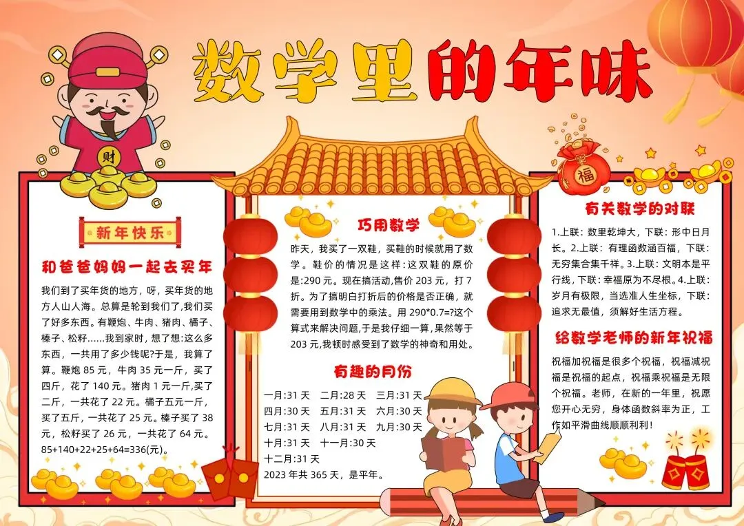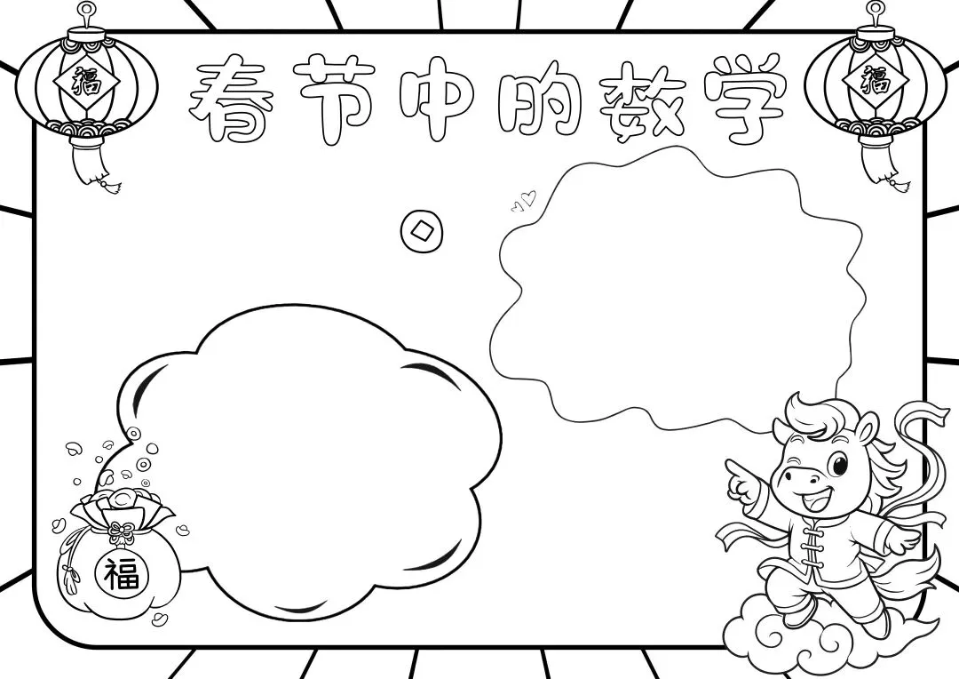 50+《年味数学手抄报模板+黑白线稿》电子版,可免费下载打印