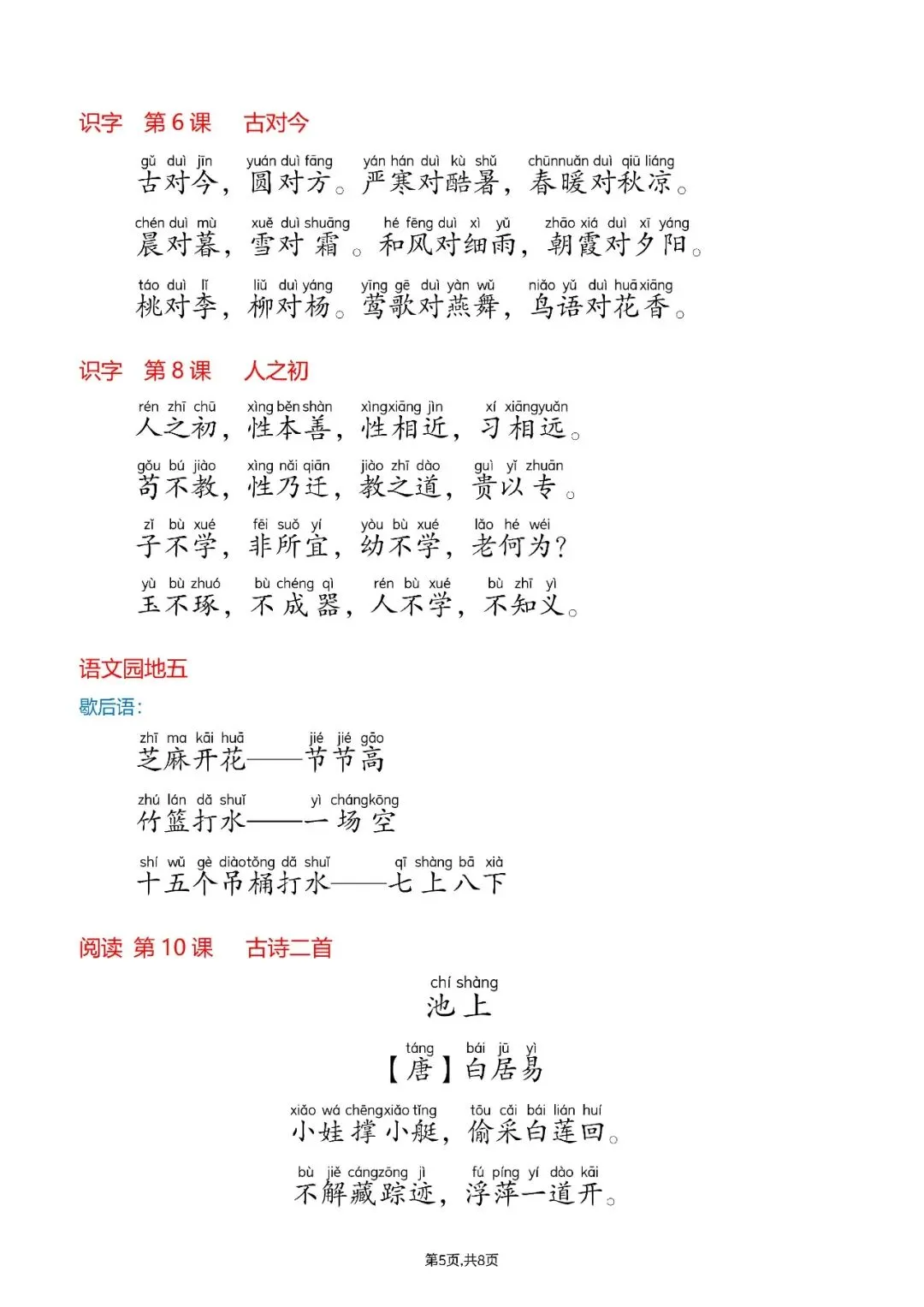 26年一年级(下)语文课文必背内容汇总,可下载打印 文末有高清电子版领取方式 由于篇幅有限,高清完整版请下载电子版哦 领取完整电子版方式: ①:发财的小手点一点右下角“👍”和“❤️” ②:关注公众号后,在对话框中回复:001 (点击名片可直接关注)↑↑↑