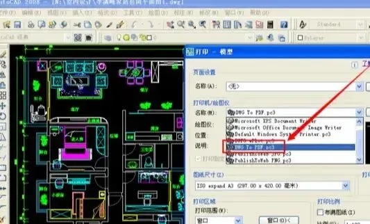 4、这里选择打印机/绘图仪是的PDF.dc3文件。