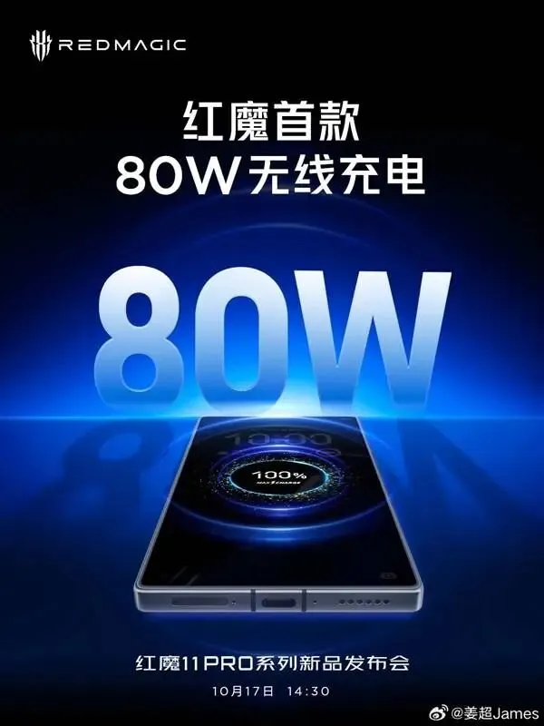 快科技10月16日消息,红魔宣布红魔11 Pro系列让旗舰手机迈入8000mAh时代,该机不仅配备8000mAh超大电池,同时支持80W无线充电,新品将在明天正式发布。