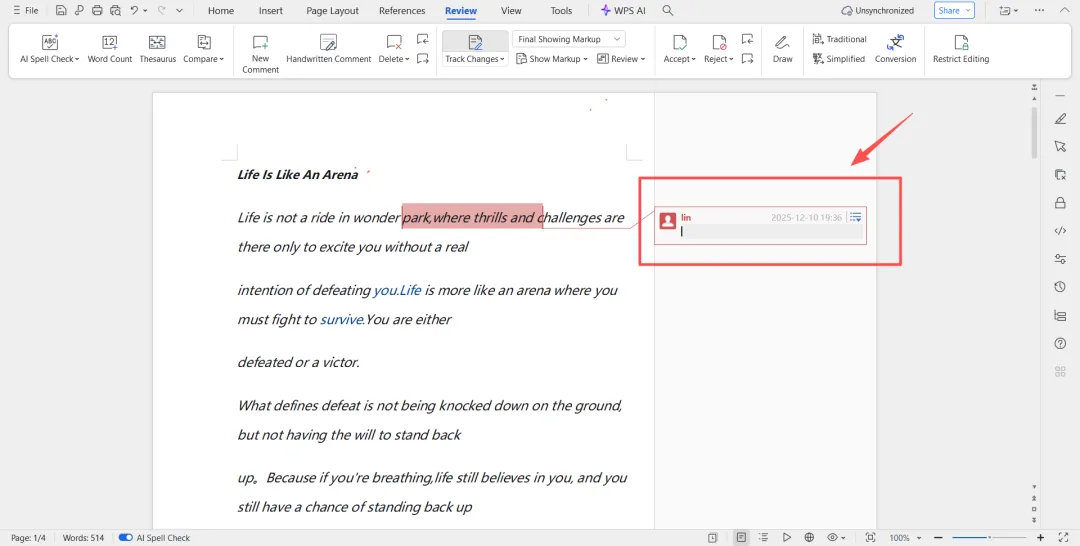 Word只允许批注的效果预览