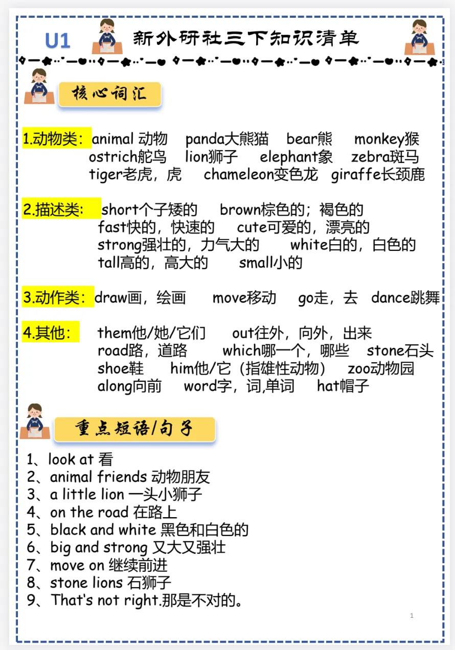 这份新外研社三下 知识清单太实用了!从动物、身体部位核心词汇,到确认事物、描述特征的实用句型,图文清晰好记,孩子提前过一遍,开学轻松跟上节奏!