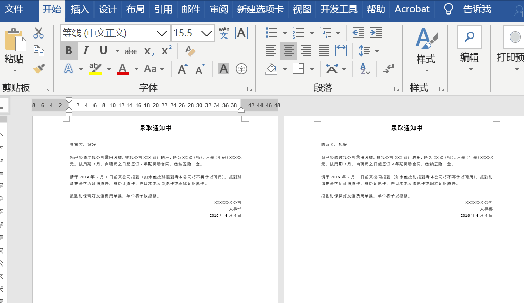 由于大部分内容是一致的,所以借用邮件合并来完成。