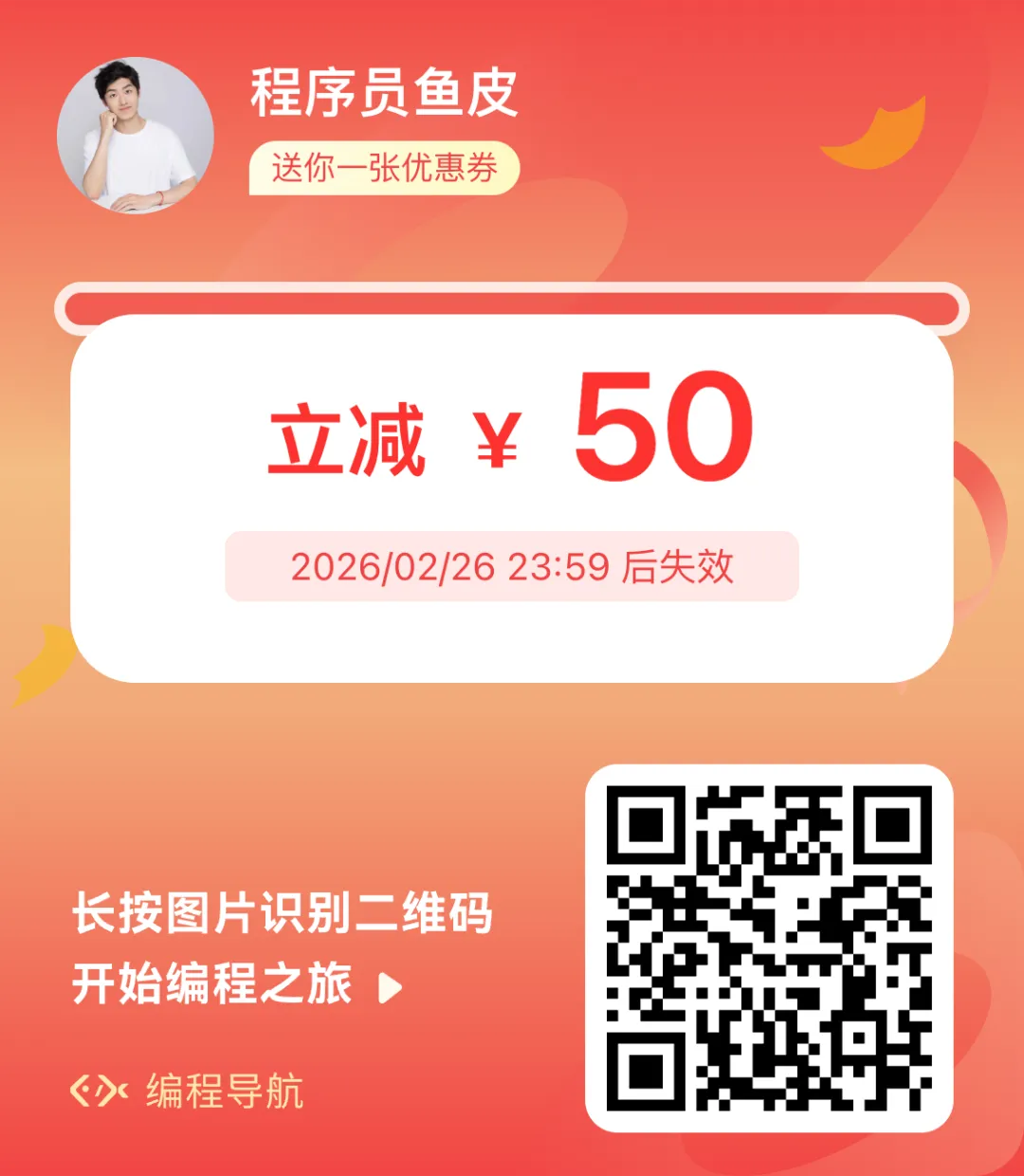 春节福利来啦,编程导航 全年最低价优惠券限时发,趁春节假期弯道超车!