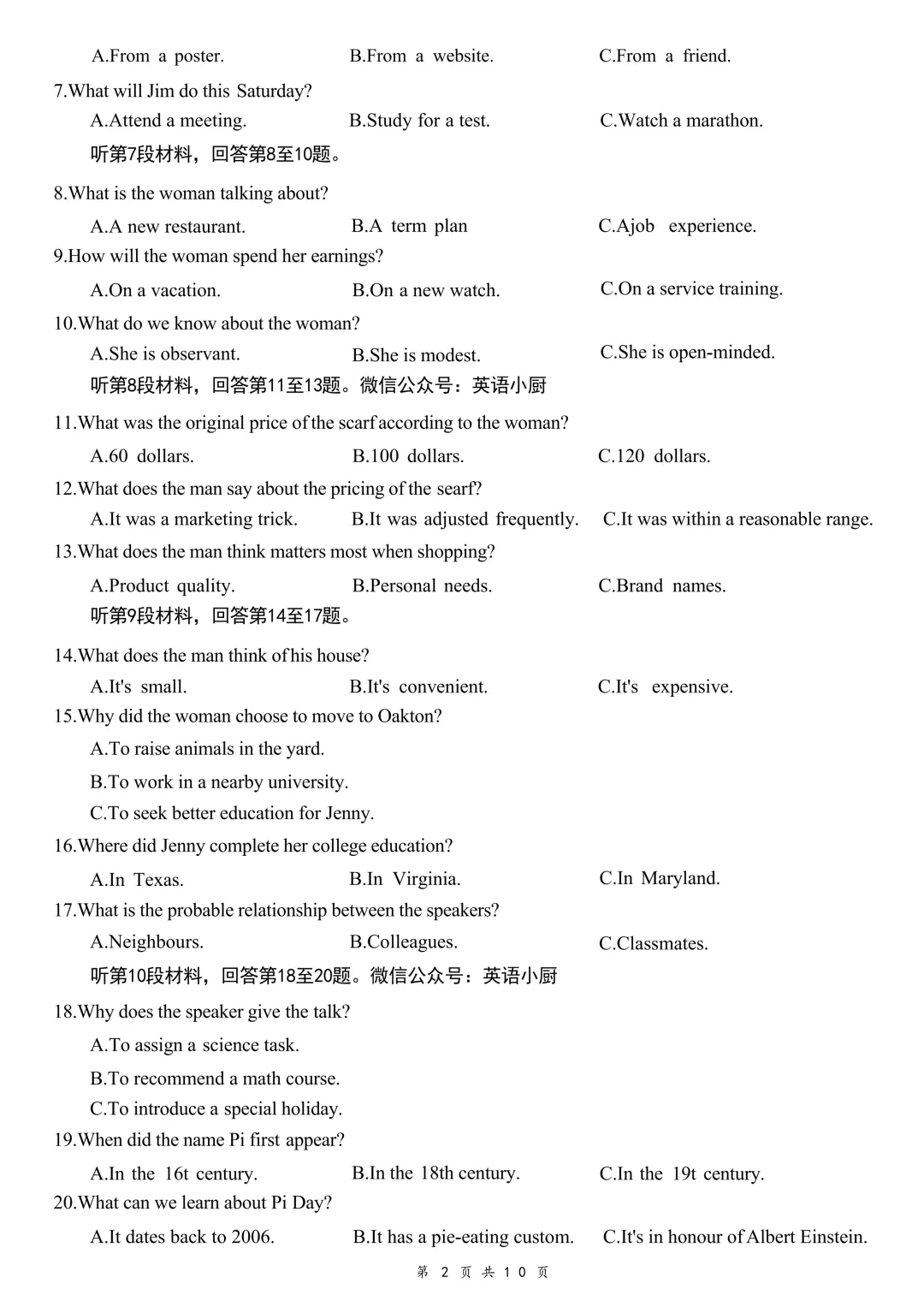 潍坊市2026届高考第一次模拟考试(pdf/word可编辑+听力音频+详细答案)