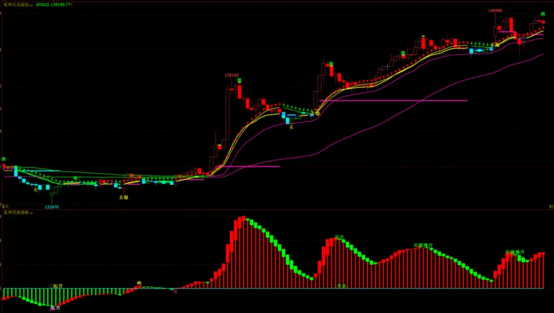 1、乾坤买卖波段主图,乾坤背离策略幅图