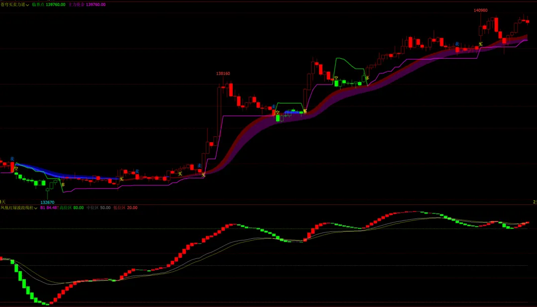 2、苍穹买卖力道主图,凤凰红绿波段线柱幅图